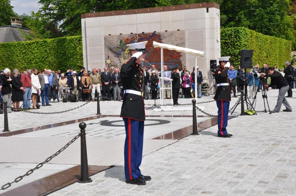 Two U.S. marines salute during the 2013 Memorial Day ceremony at Luxembourg American Cemetery.