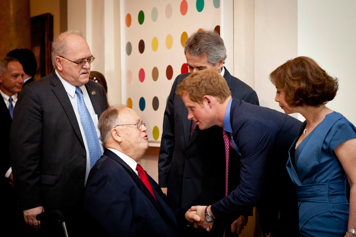 ABMC Secretary Max Cleland shakes hands with Prince Harry.