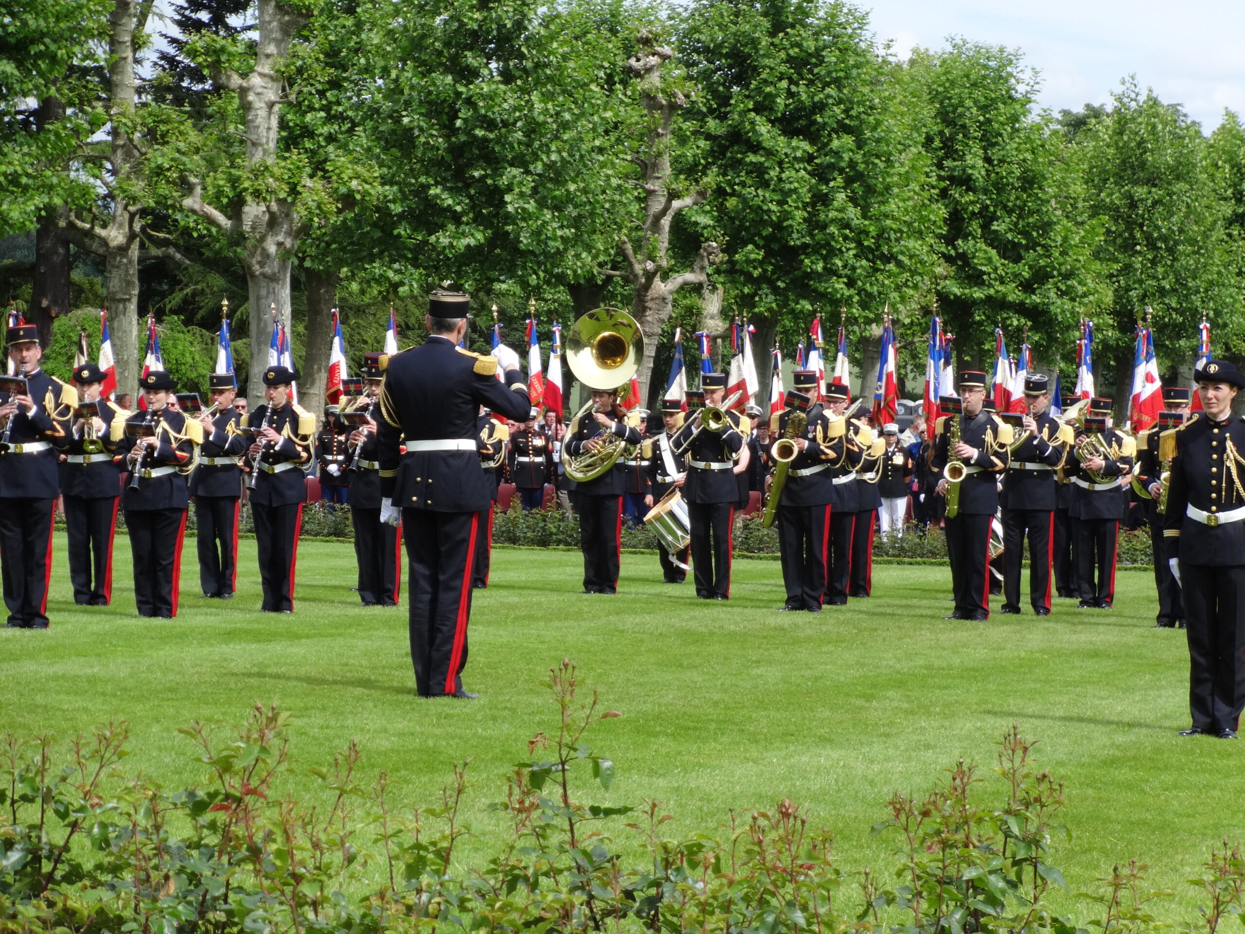 The French band of the "Troupes de Marine” performs during the 2014 Memorial Day Ceremony at Aisne-Marne American Cemetery in France.