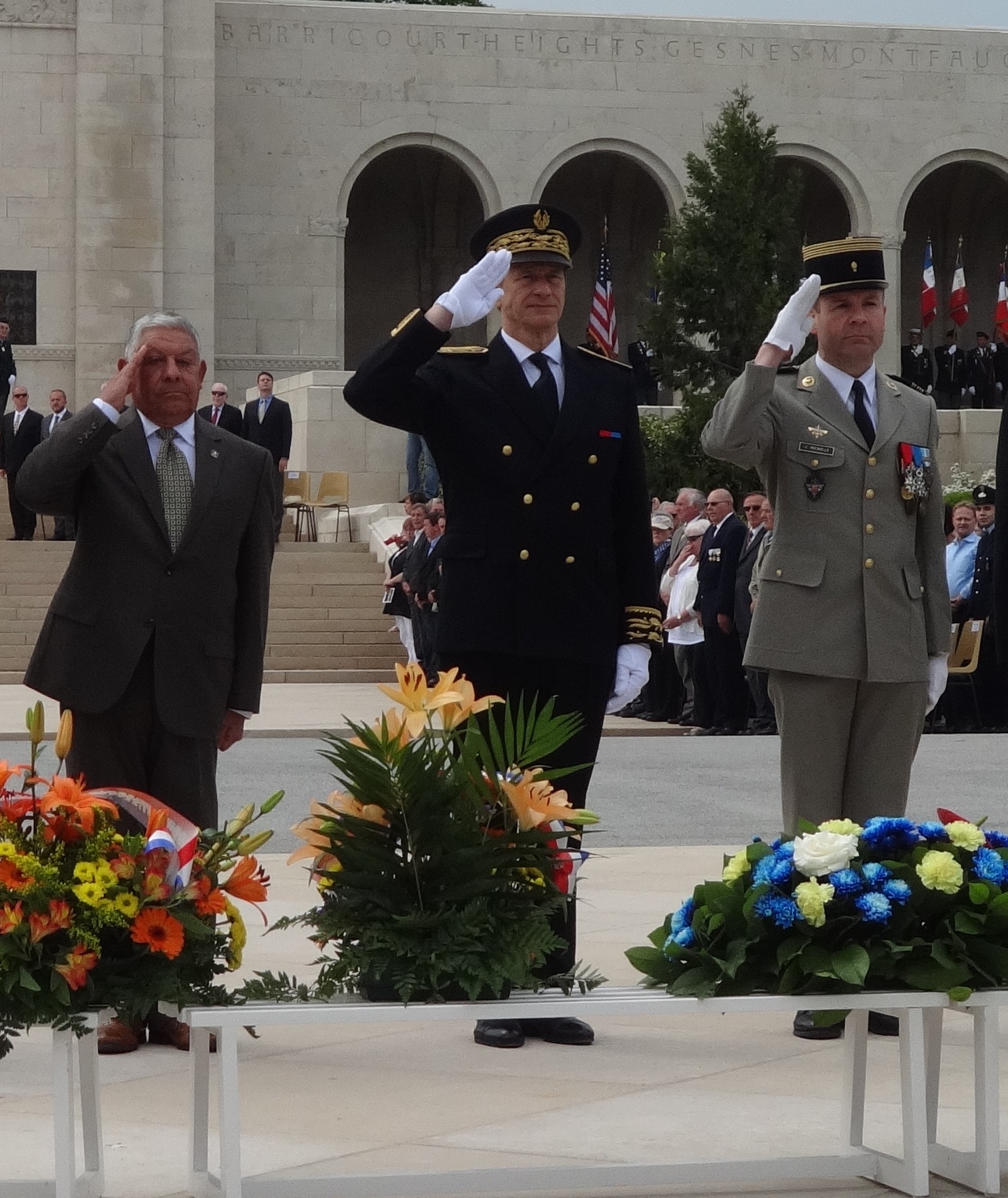 Members of th official party salute after laying their wreaths.