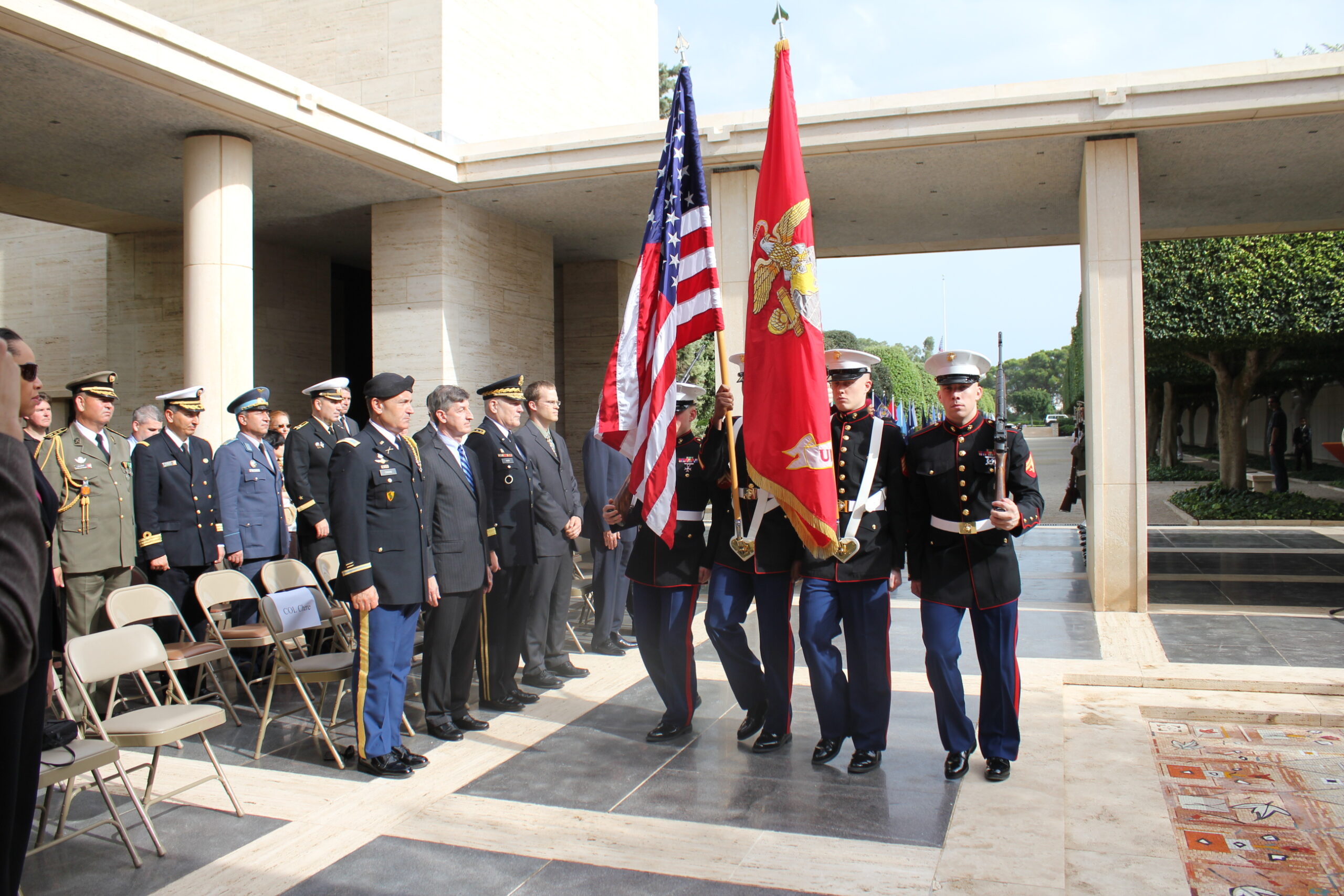 A Color Guard arrives during the 2012 Veterans Day Ceremony at North Africa American Cemetery.