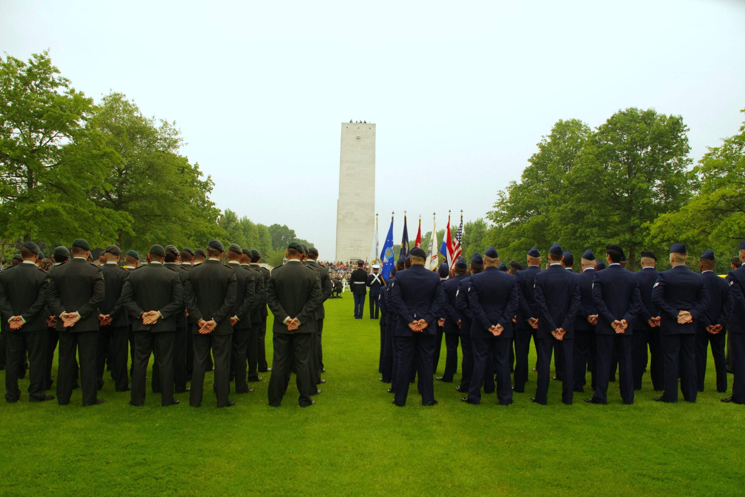 Members of the military stand during the 2016 Memorial Day Ceremony at Netherlands American Cemetery. Image courtesy of Wim Koops.