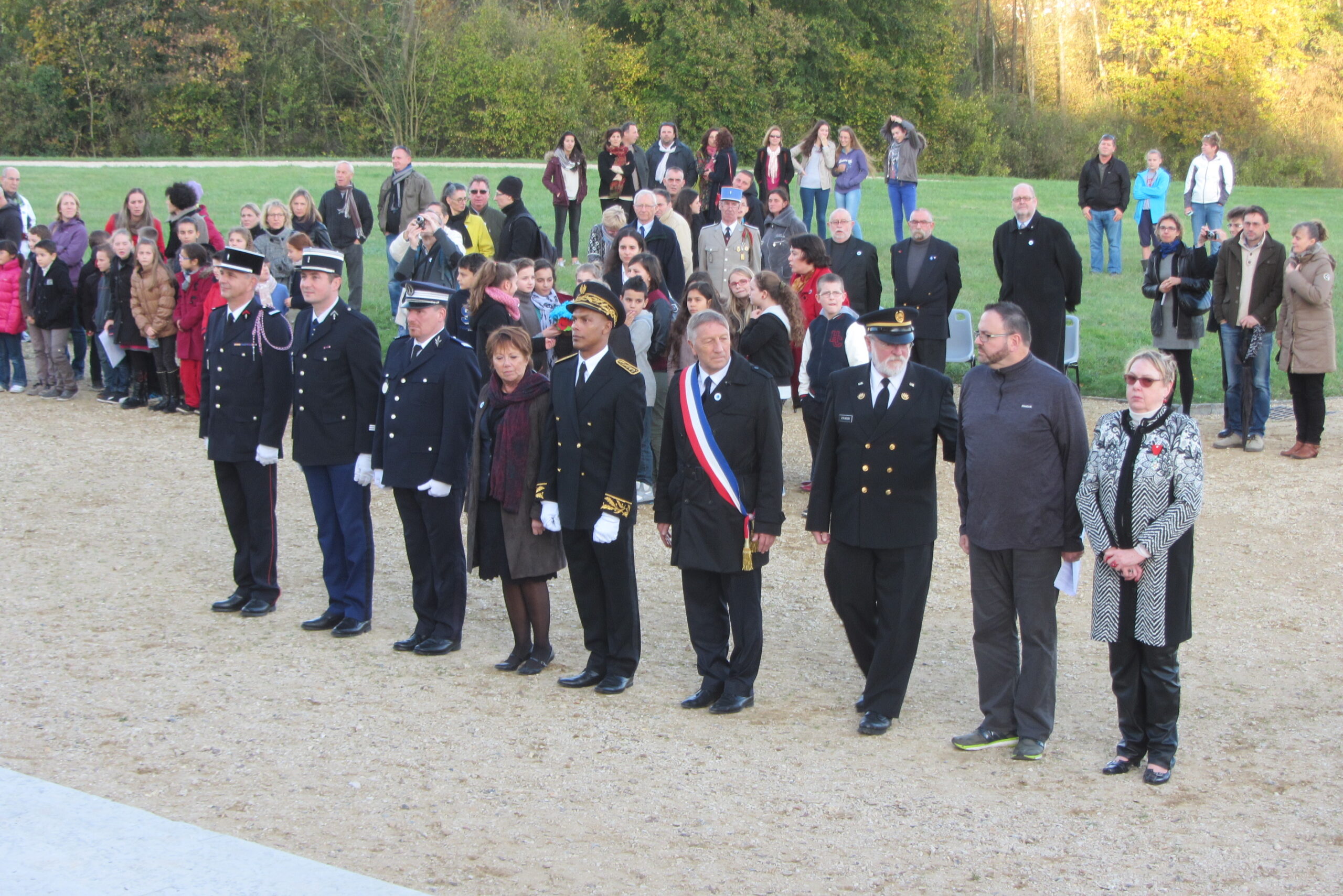 Members of the official party prepare to lay wreaths during the 2014 Veterans Day/Armistice Day Ceremony at Chateau-Thierry American Monument.
