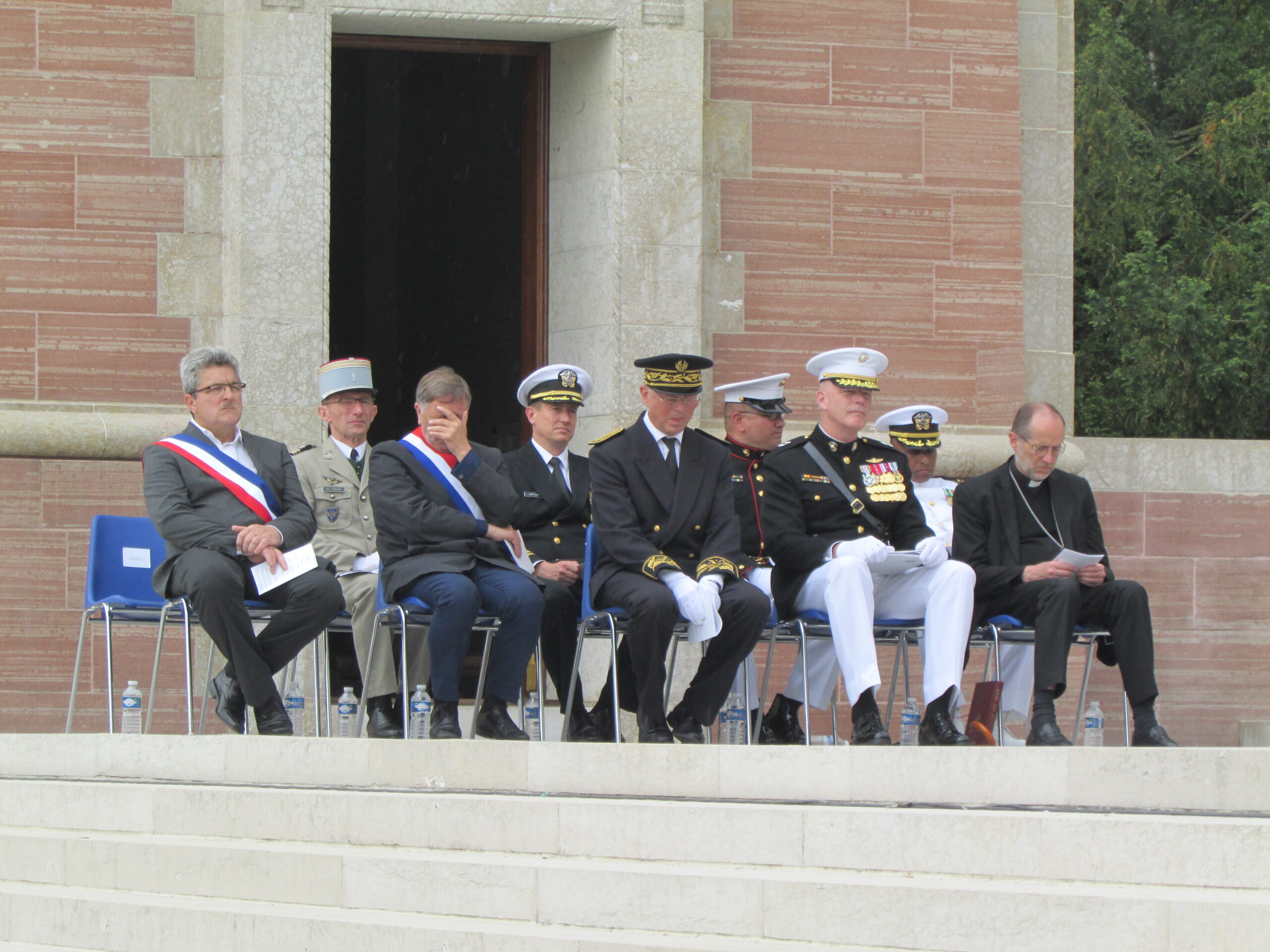 Members of the official party sit just outside the chapel during the 2016 Memorial Day Ceremony at Oise-Aisne American Cemetery.
