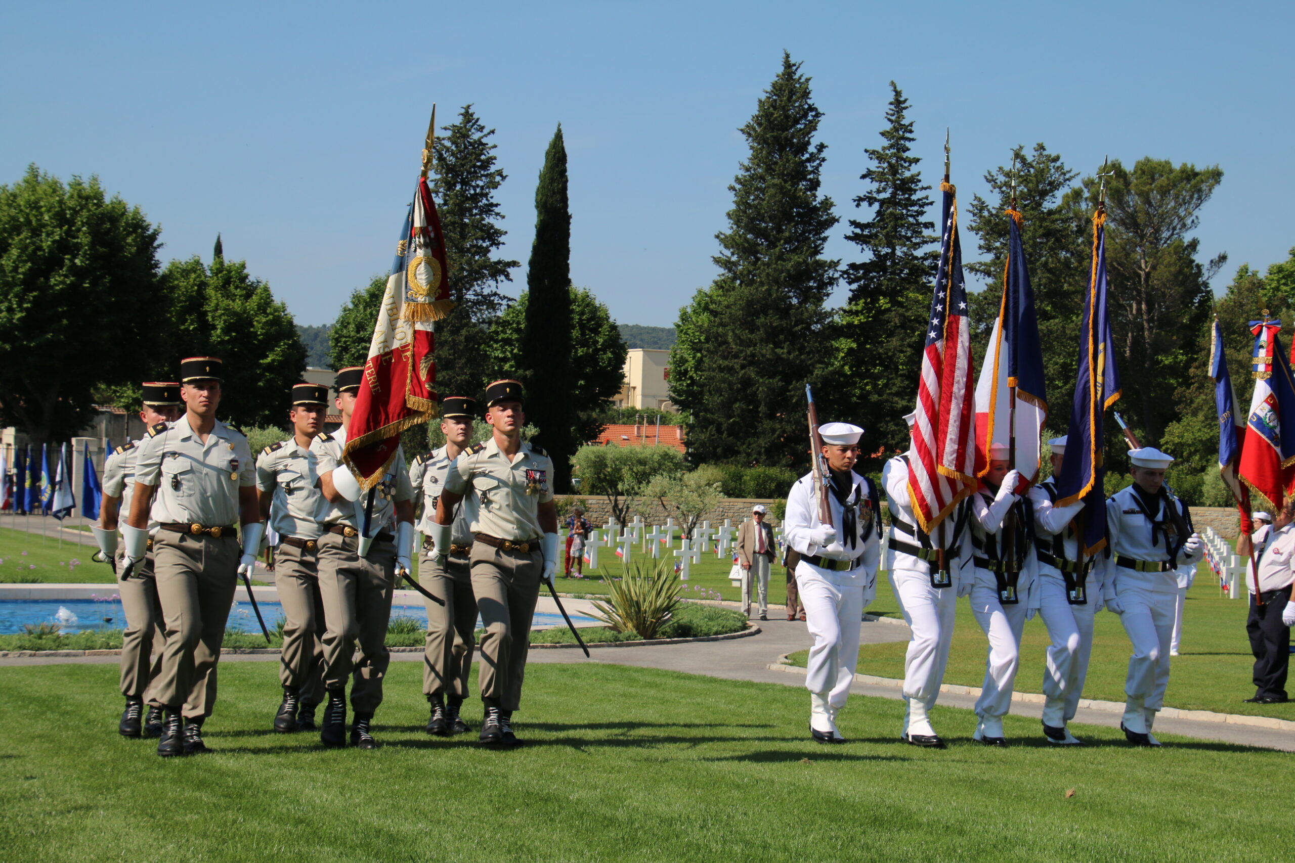 Members of the French and American military participated in the 2017 Memorial Day Ceremony at Rhone American Cemetery. Image courtesy of Michel Delanoy.