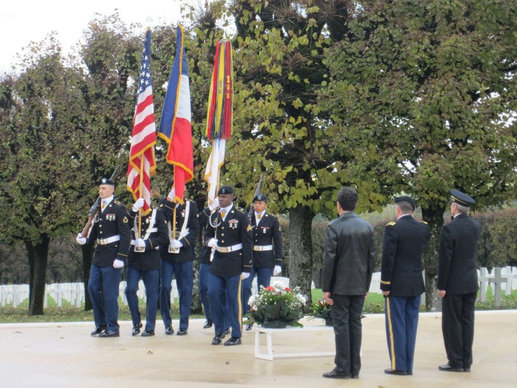Retiring the colors during the 2012 Veterans Day Ceremony at Meuse-Argonne American Cemetery.