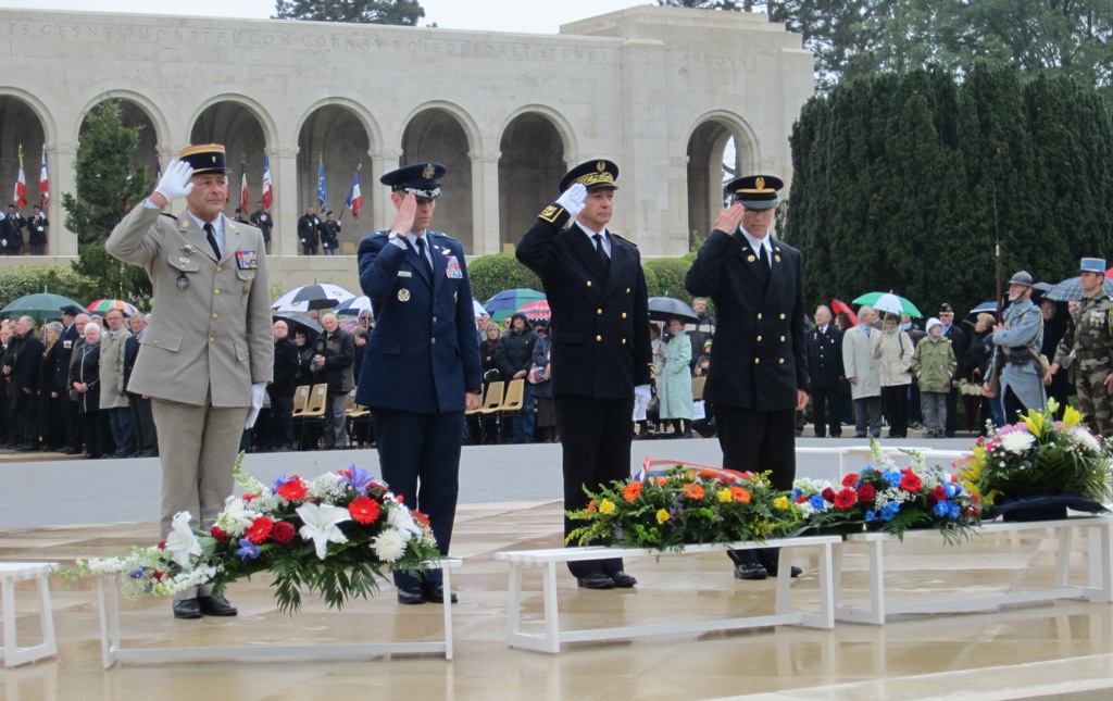 Members of the official party lay wreaths during the 2013 Memorial Day ceremony at Meuse-Argonne American Cemetery in France.