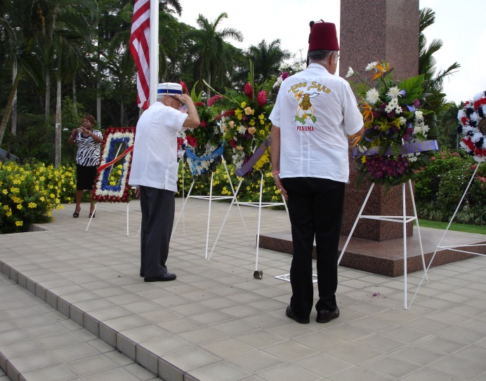 Veterans participate in the wreath-laying at the 2013 Memorial Day ceremony at Corozal American Cemetery.