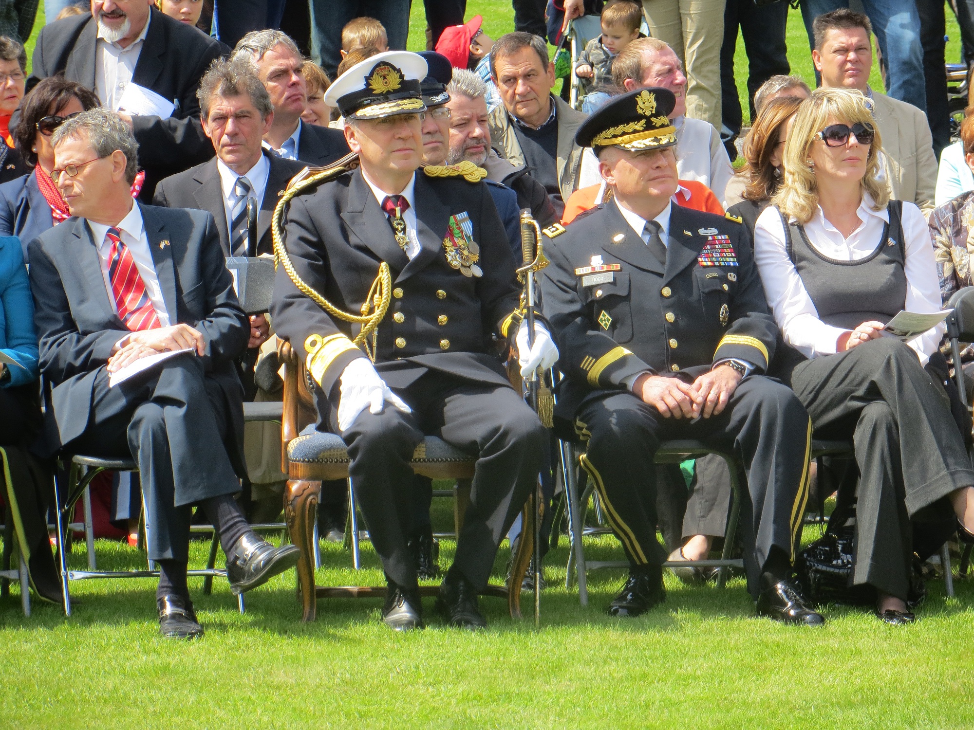Military and government officials attend the 2013 Memorial Day ceremony at Flanders Field American Cemetery.
