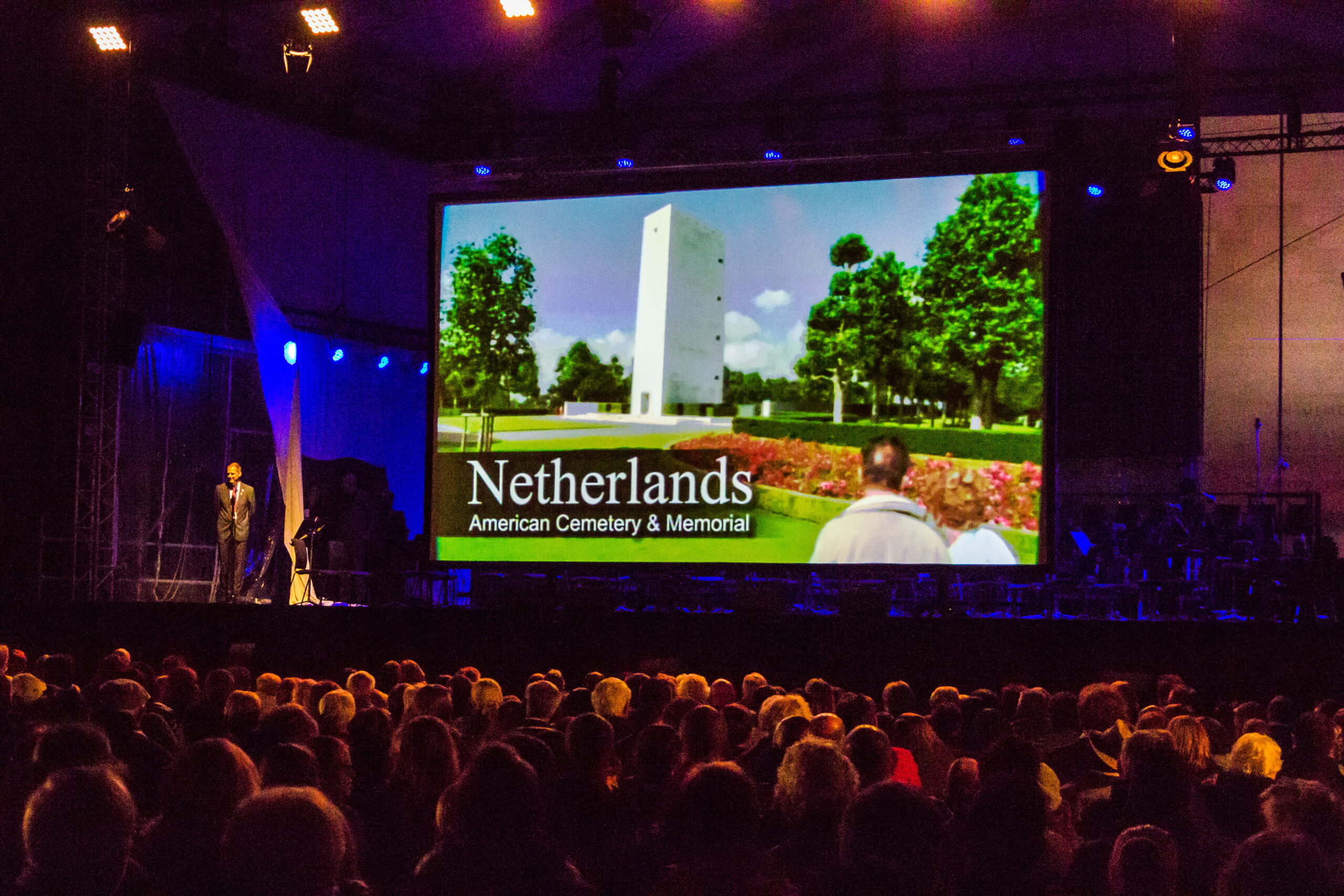 Netherlands American Cemetery Superintendent Keith Stadler greets the audience prior to the film screening.