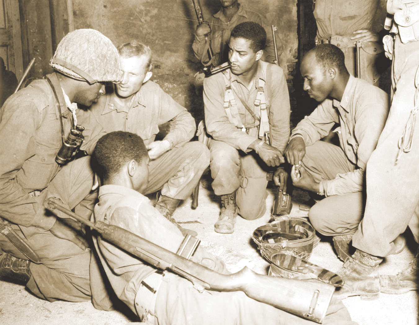 Officers of the 92nd Infantry Division plan crossing of the Arno River, Sep. 1, 1944.