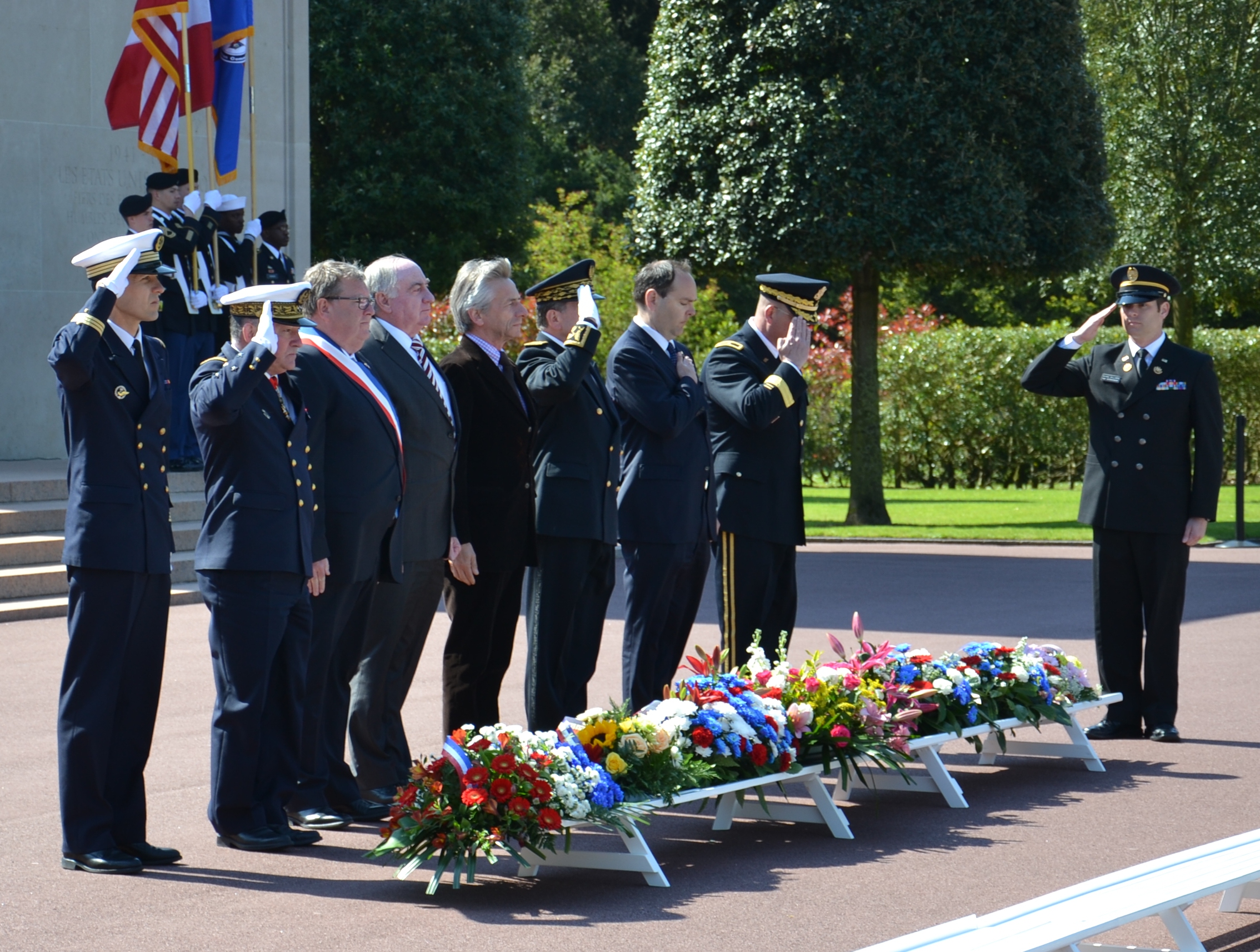 Members of the official party lay wreaths during the 2013 Memorial Day ceremony at Normandy American Cemetery.