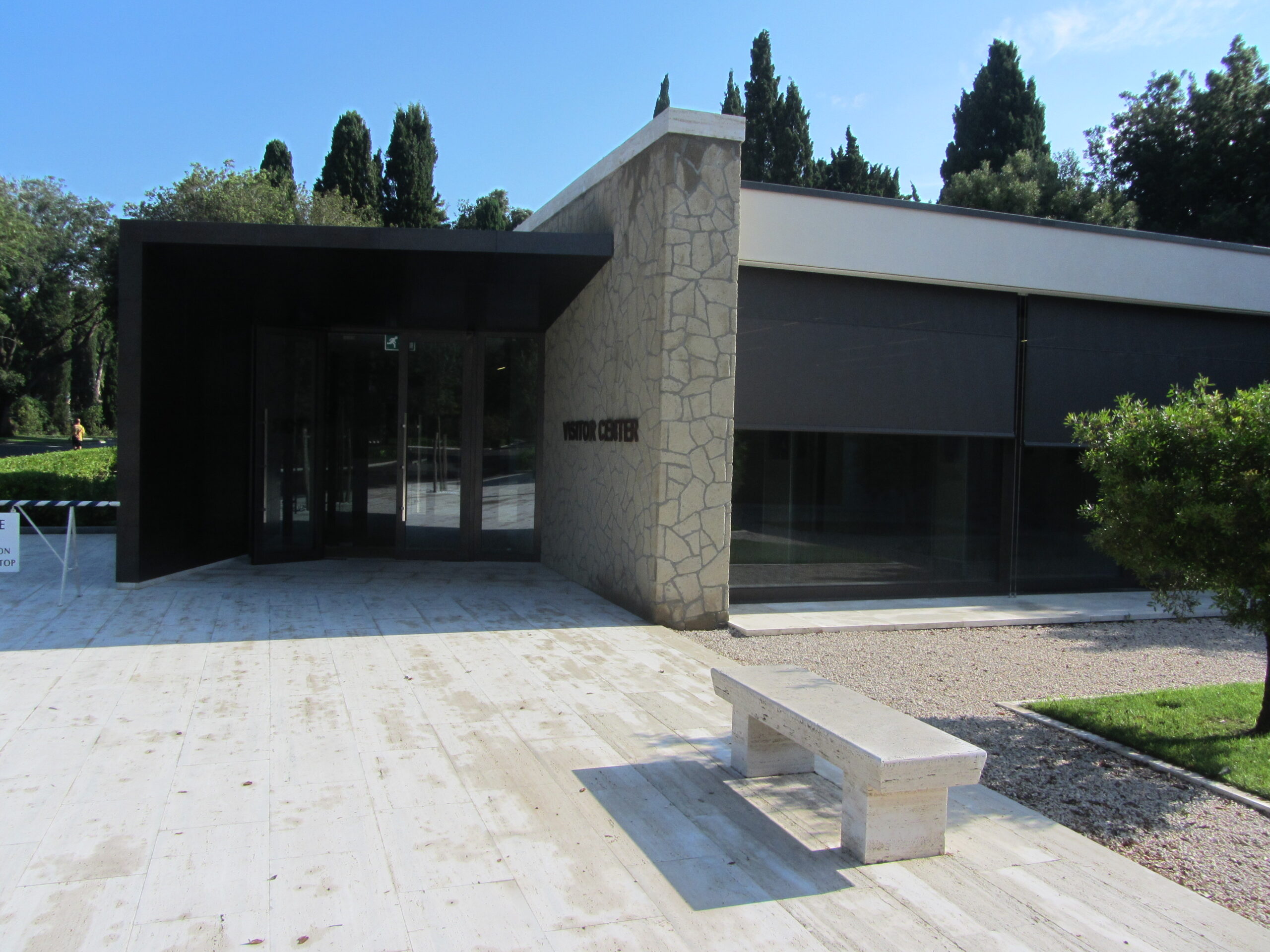 Outside the new visitor center at Sicily-Rome American Cemetery.