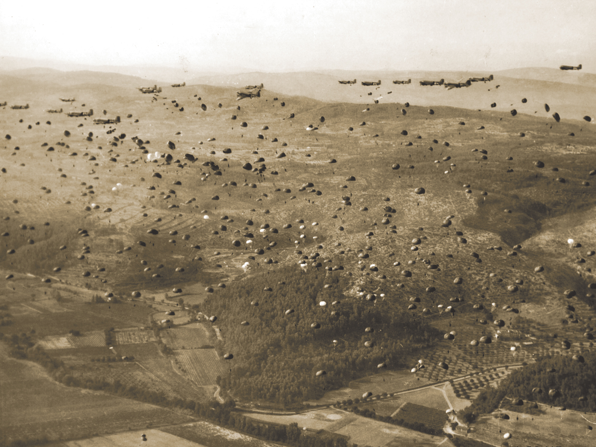 Paratroopers of the 551st Parachute Infantry Battalion drop near Le Muy