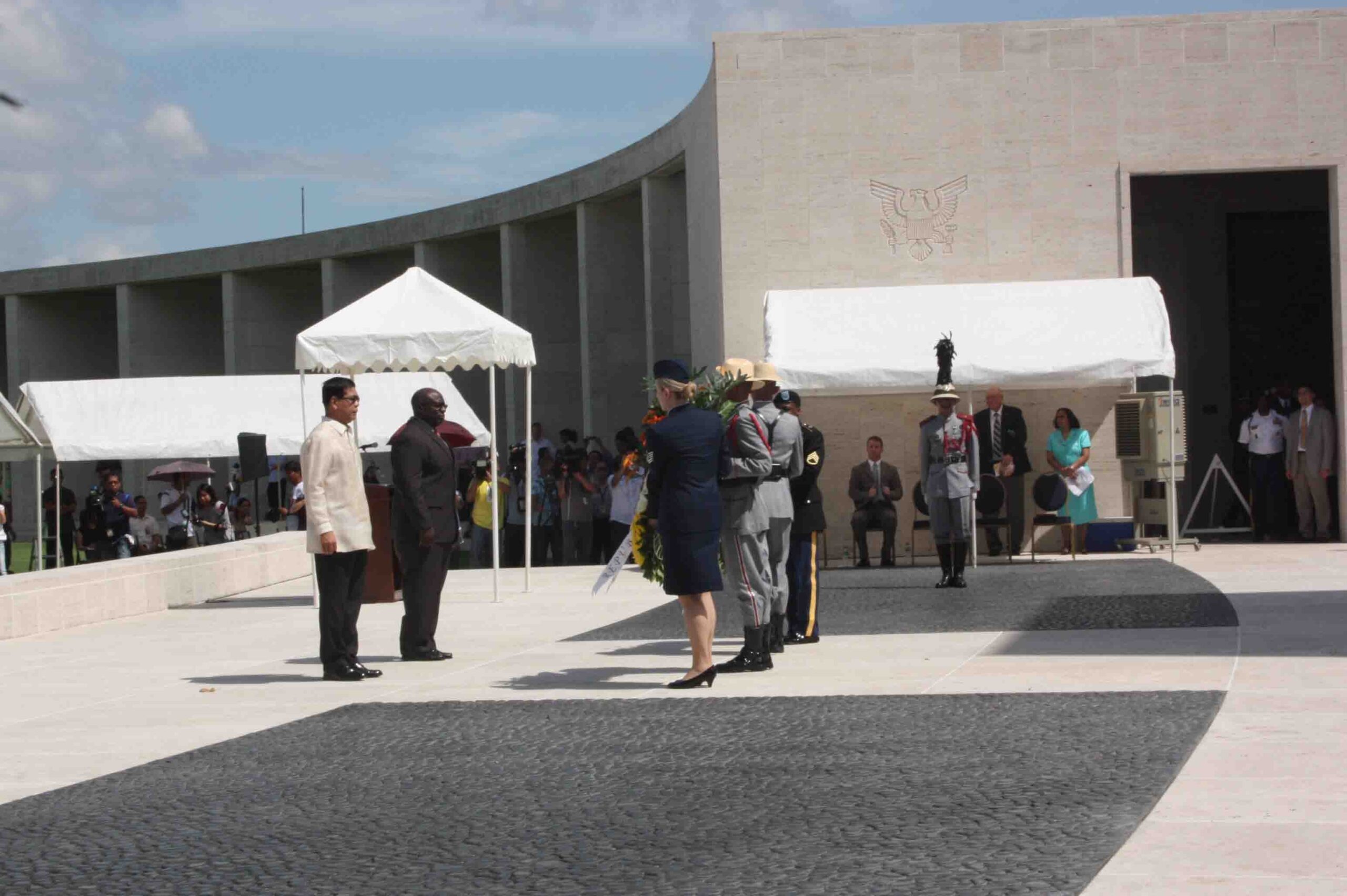 Participants lay a wreath during the 2012 Veterans Day Ceremony at Manila American Cemetery.