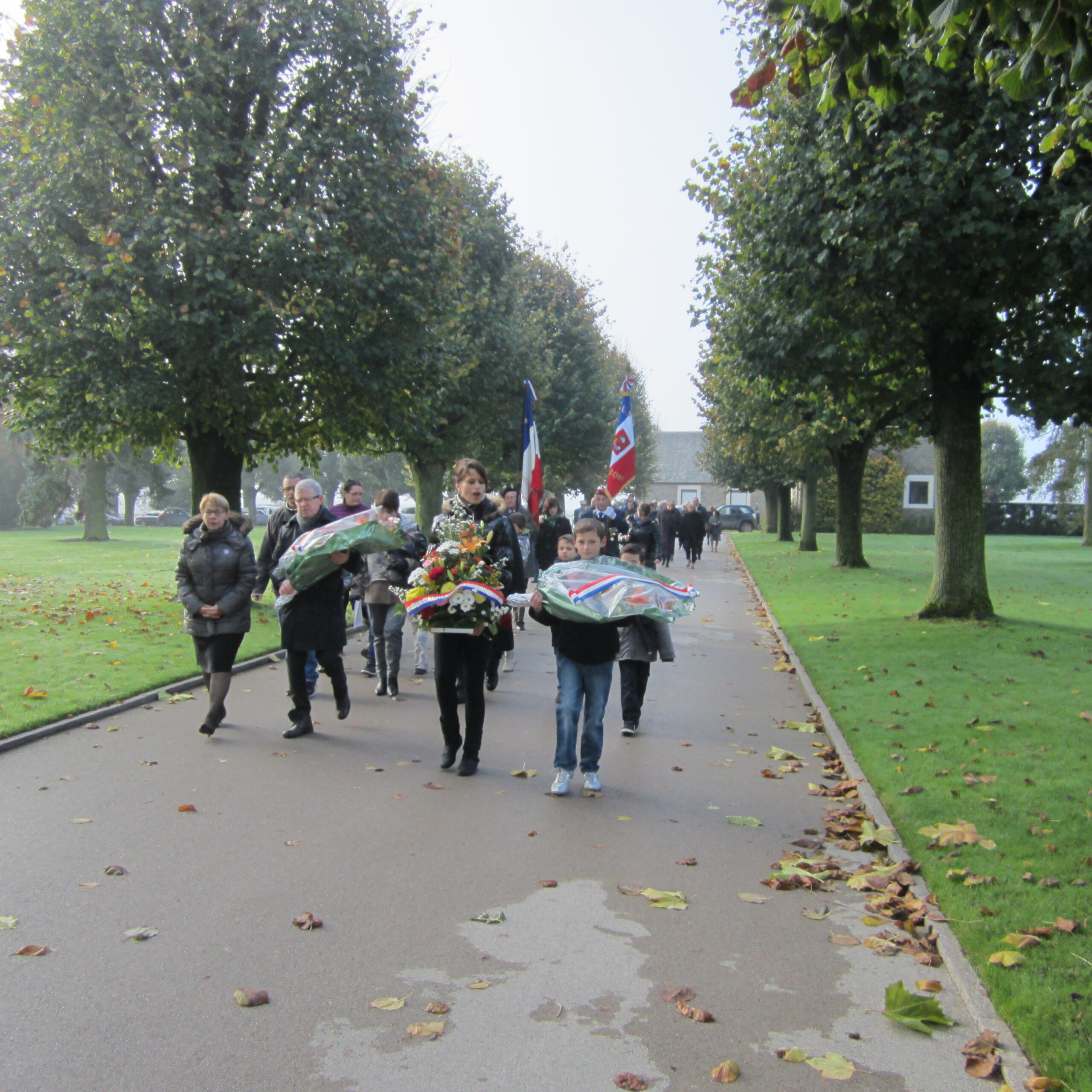 Participants enter the cemetery during the 2013 Veterans Day Ceremony at Somme American Cemetery in France.