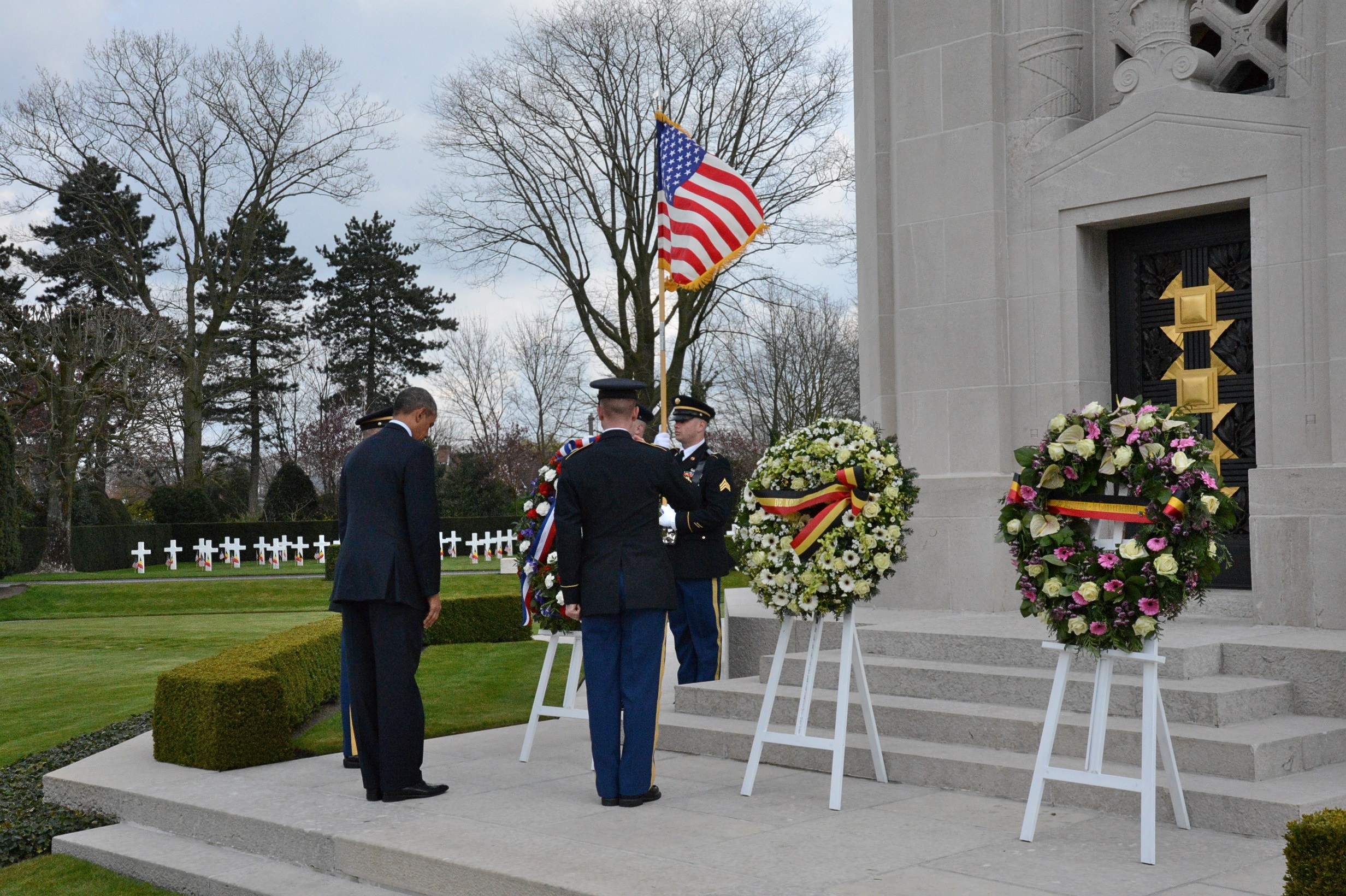 President Obama laid a wreath during his visit to Flanders Field American Cemetery.