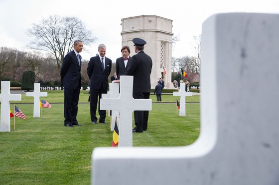 President Obama stands amongst the headstones at Flanders Field American Cemetery