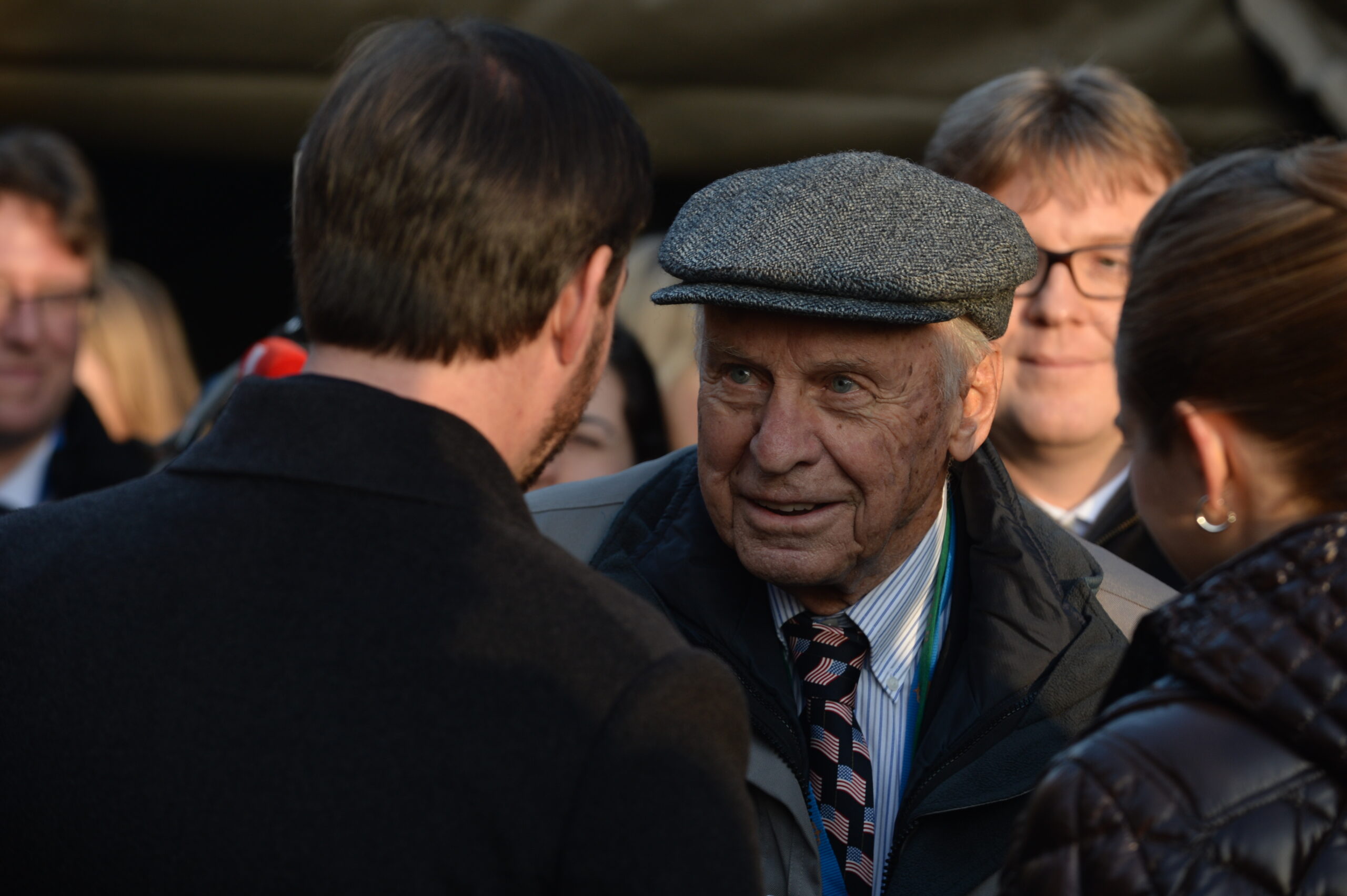 Retired Lt. Col. Fred Gordon talks with ceremony attendees.
