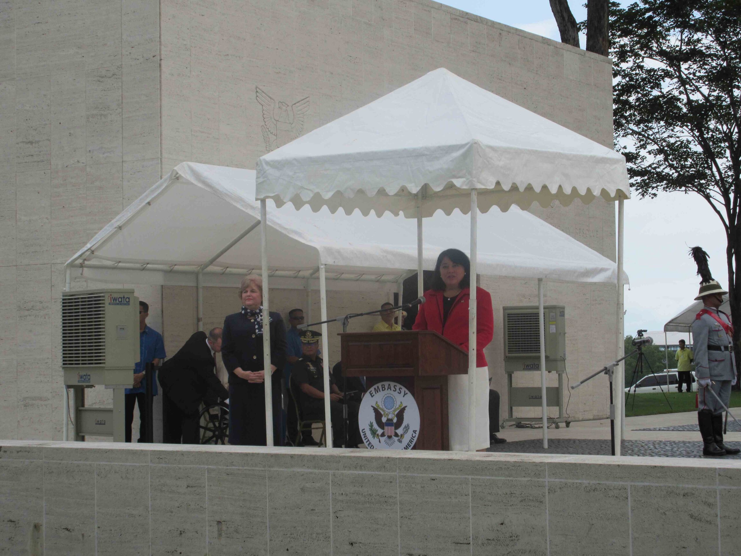 RimaAnn Nelson stands at the podium to deliver her remarks.