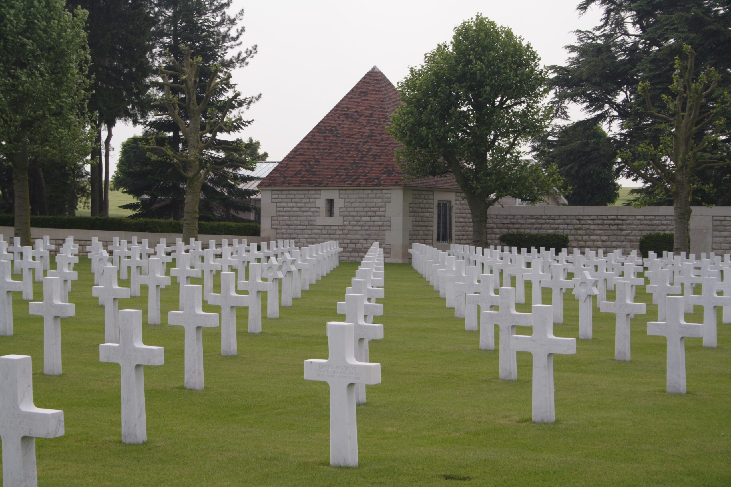Rows of white headstones fill the plot area at Somme American Cemetery.