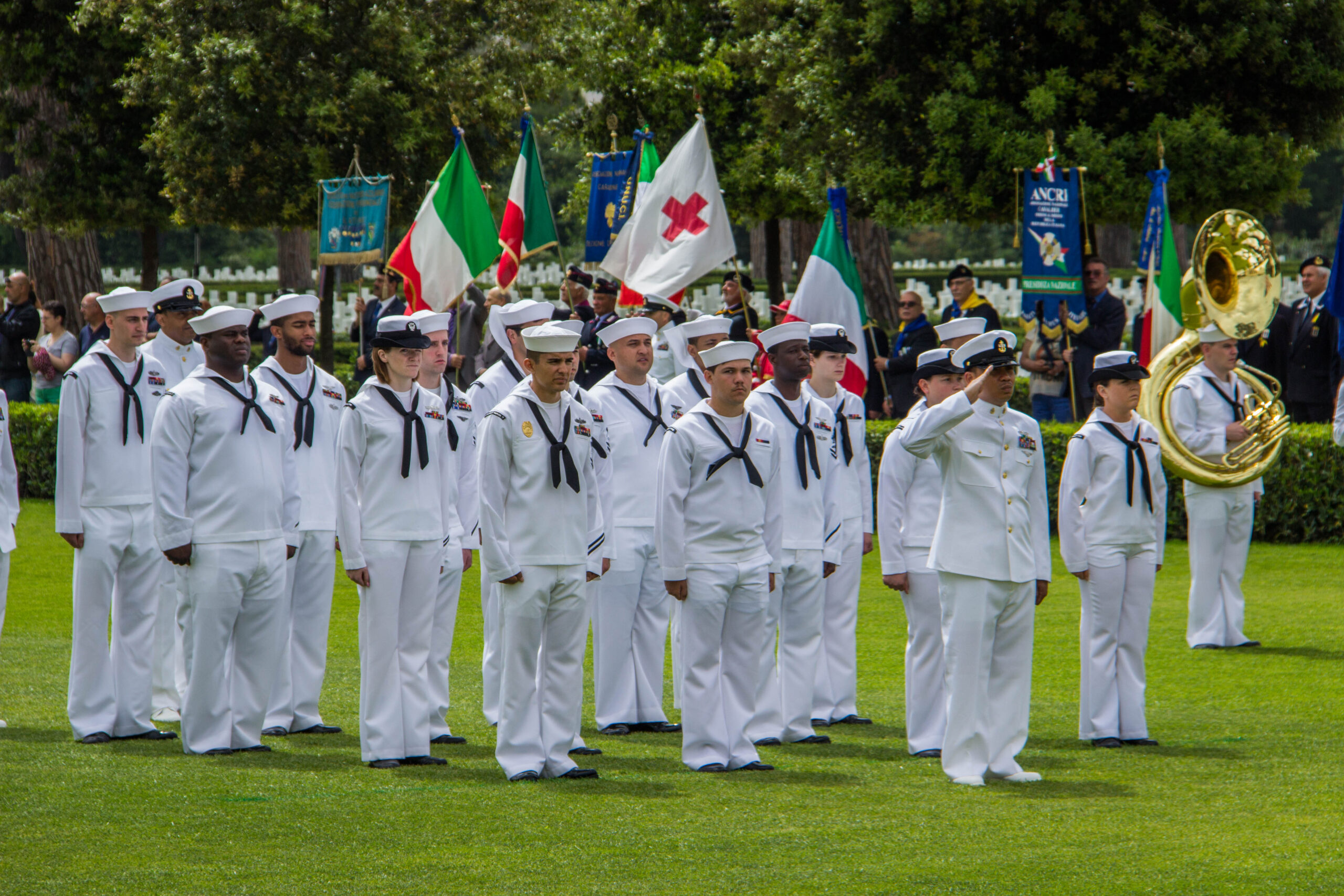 Members of the U.S. Navy participate in the 2016 Memorial Day Ceremony at Sicily-Rome American Cemetery.