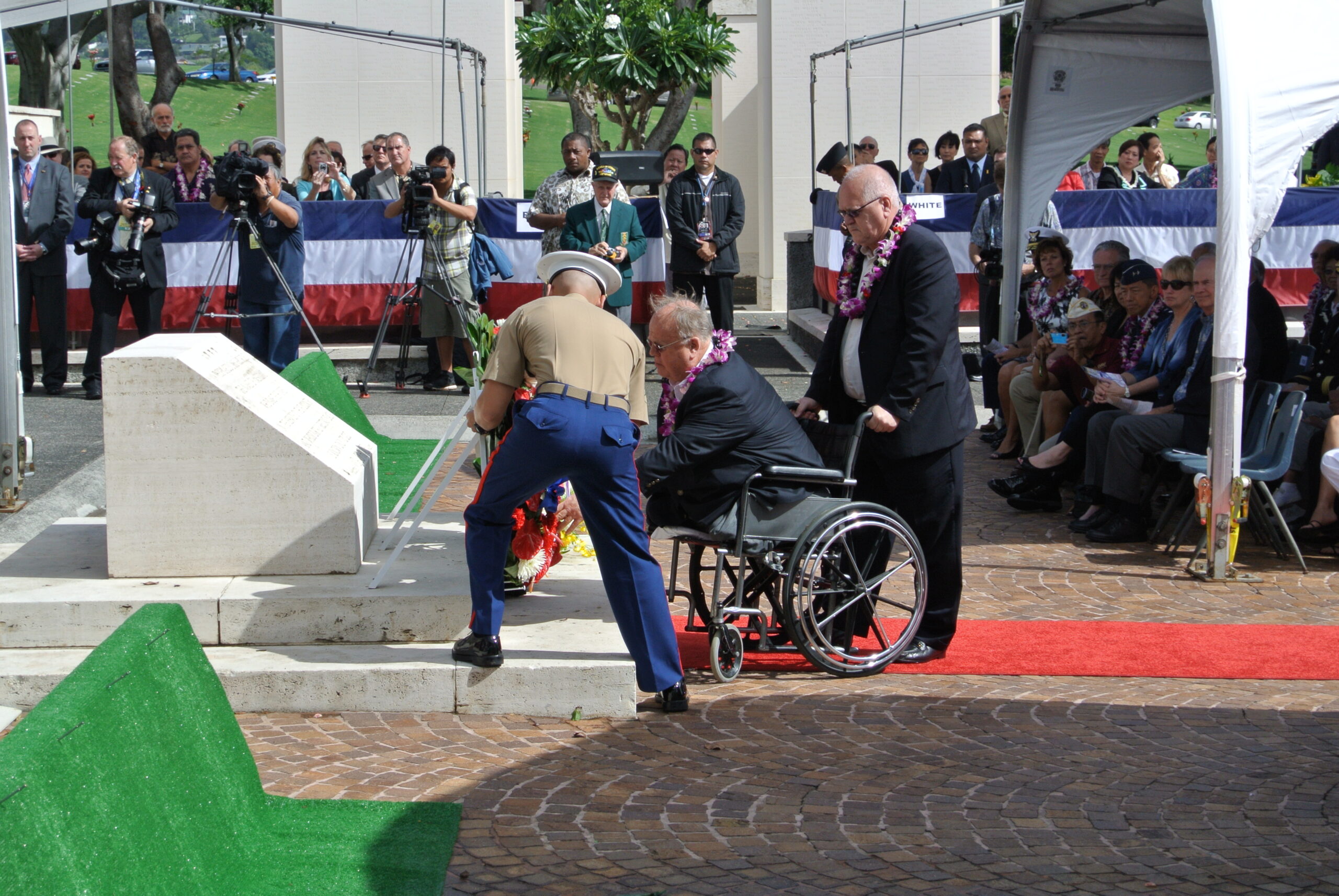 Secretary Cleland lays a wreath at the Honolulu Memorial.