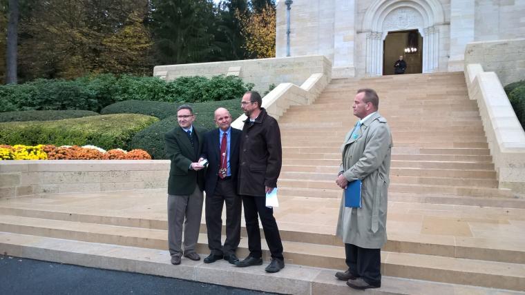 Sgt. Paul Jones Robinett’s identification tag was recovered in France in 2010 by Alain Romelot. Exactly 100 years after the Great War ended, Robinett’s identification tag was given to his grandson during a ceremony at Aisne-Marne American Cemetery in France.
