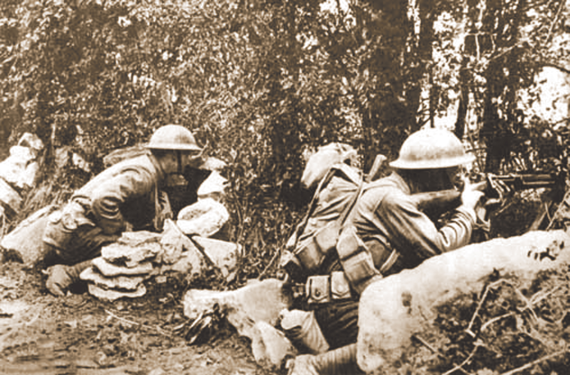 Soldiers prepare for combat during World War I.