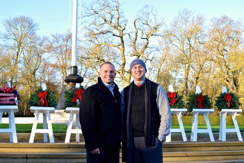 SSgt. Jason Hannen and TSgt. William Wood organized the ceremony and the effort to have 300 holiday wreaths laid at Cambridge American Cemetery on December 13