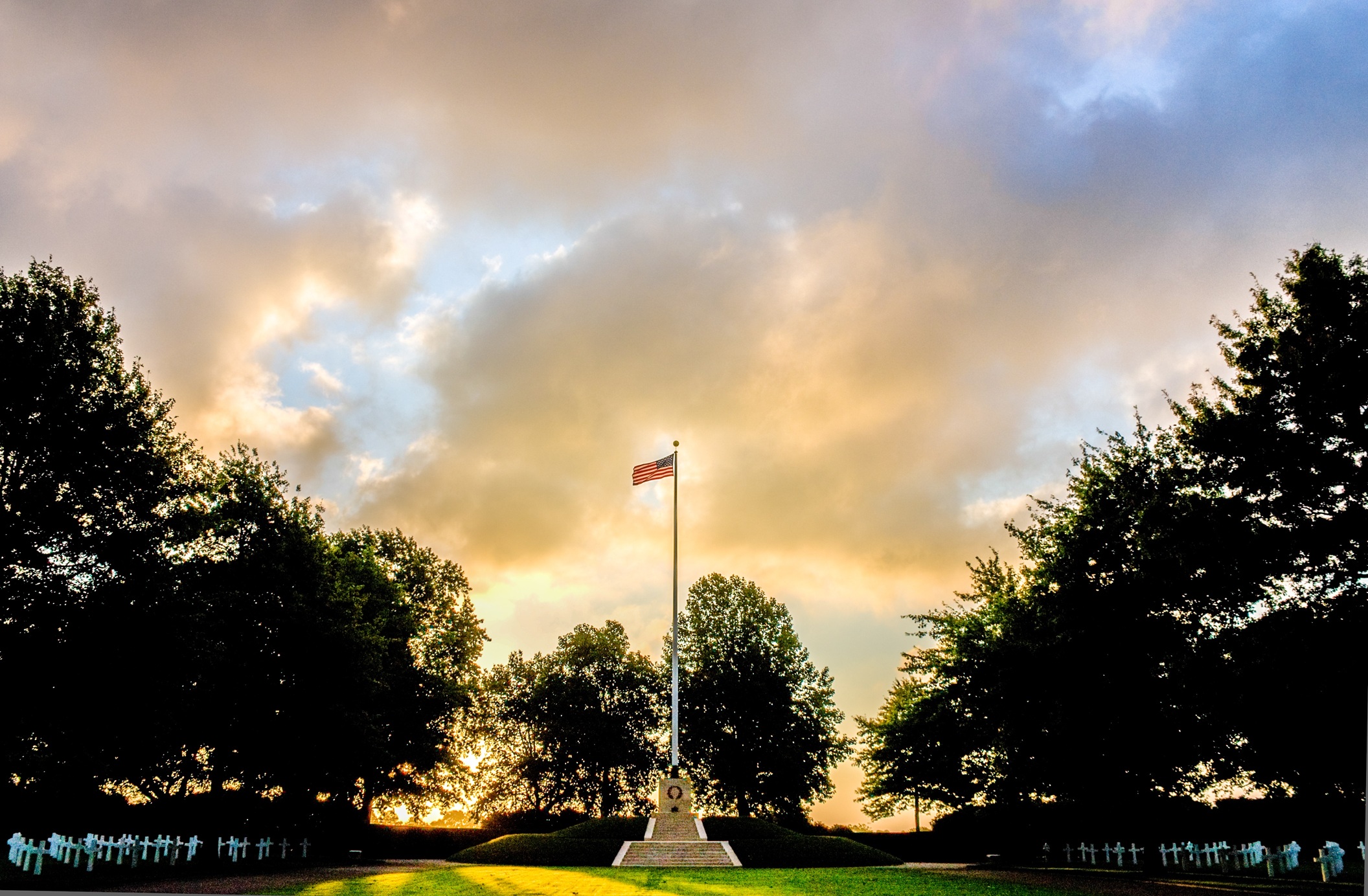 Sunrise over Netherlands American Cemetery, in Margraten, Netherlands