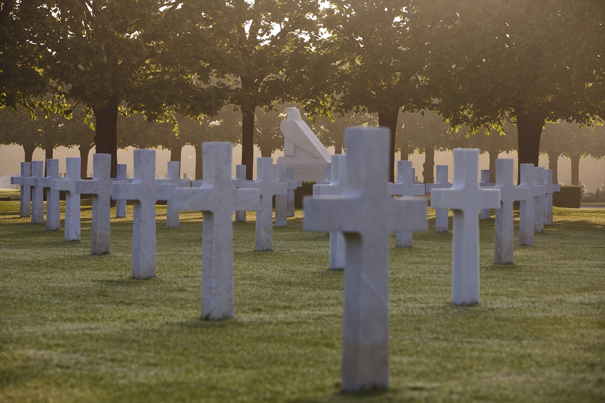 Sunset of the headstones at St. Mihiel American Cemetery, France.