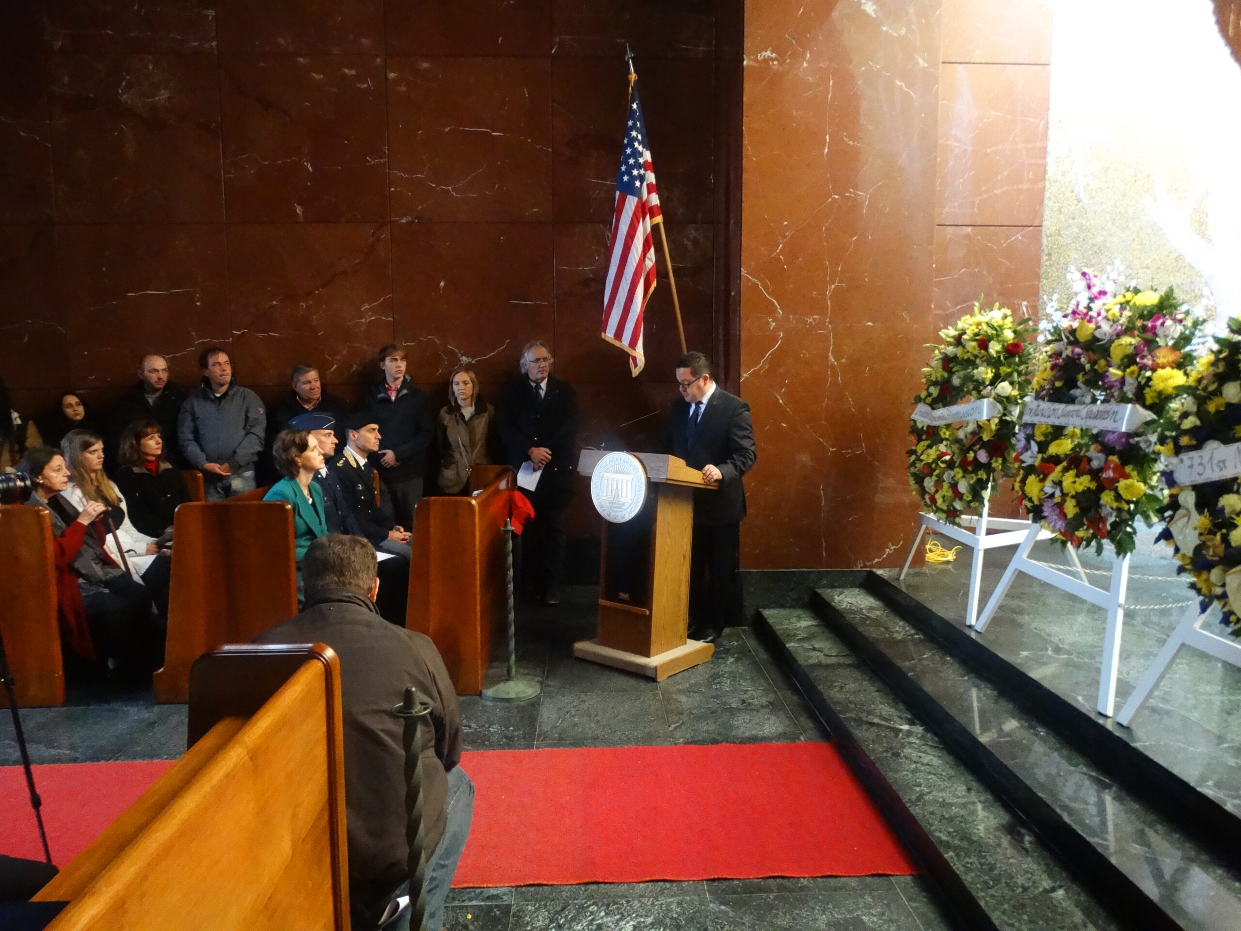 Superintendent Angel Matos delivers remarks during the 2016 Veterans Day Ceremony at Florence American Cemetery.