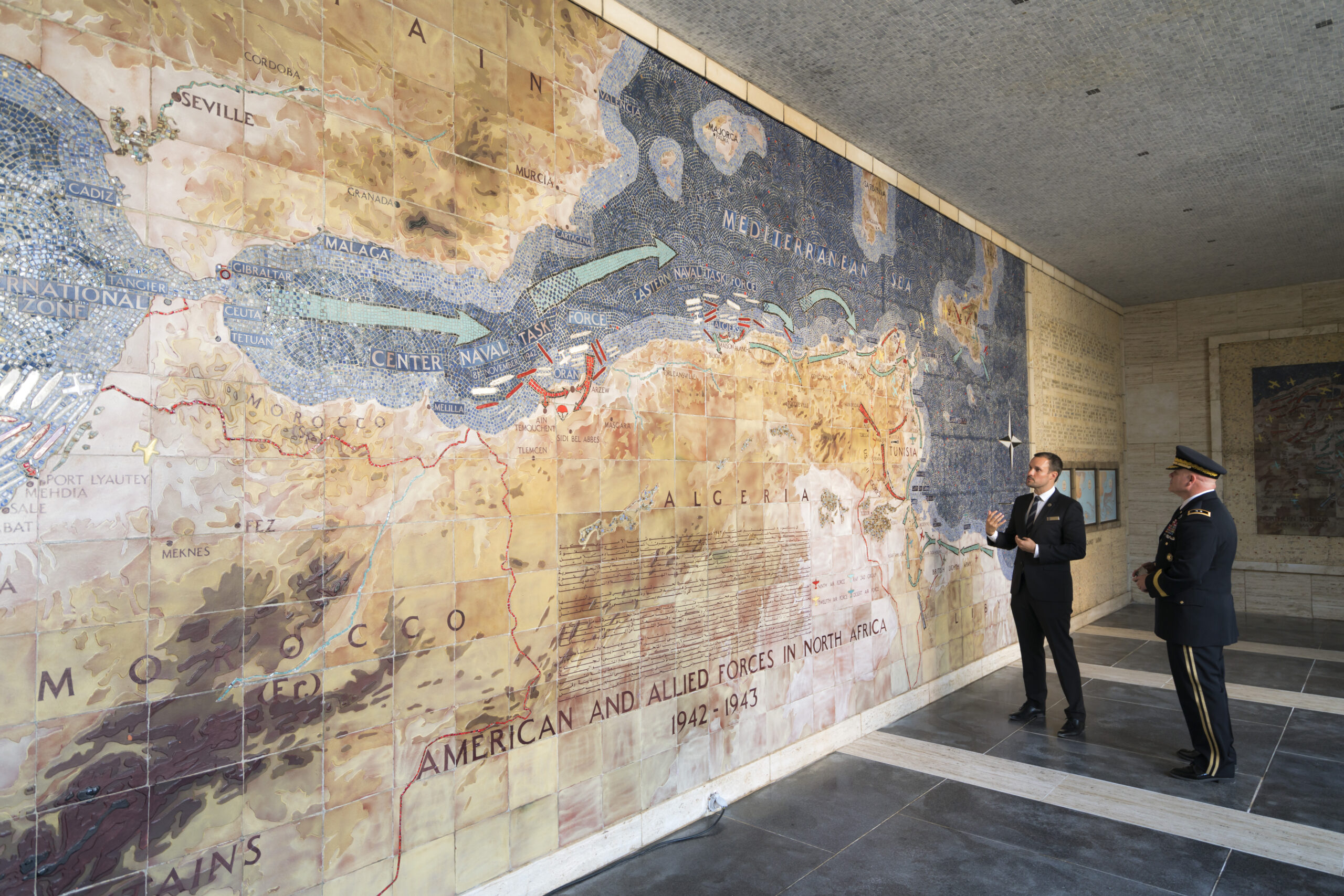 Superintendent Ryan Blum gives Maj. Gen. Roger L. Cloutier, Jr., a tour after the 2018 Veterans Day Ceremony at North Africa American Cemetery in Tunisia.