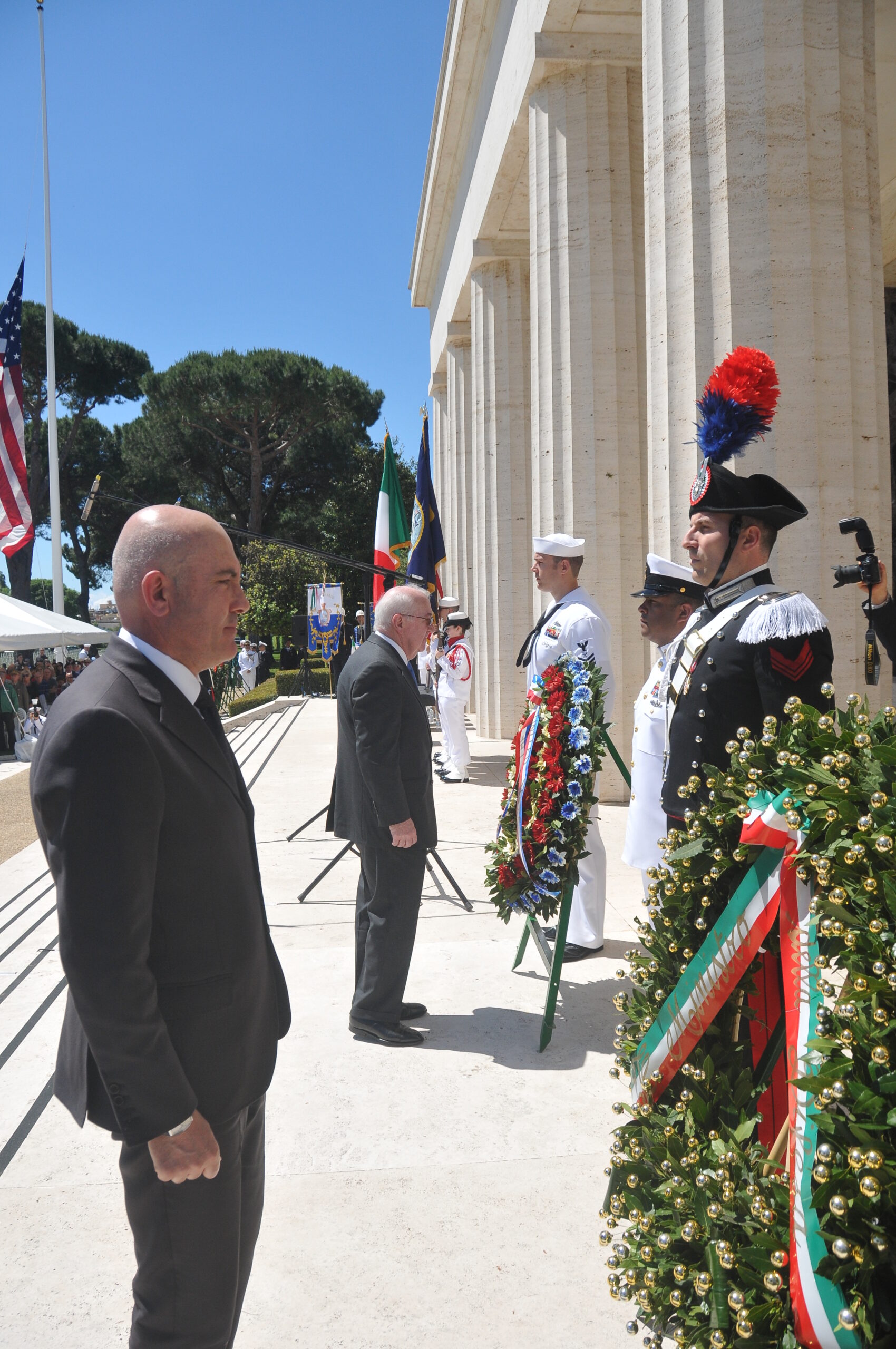 U.S. Ambassador to Holy See Kenneth Hackett along with Italian Deputy Minister of Defense Alfano lay wreaths during the 2015 Memorial Day Ceremony at Sicily-Rome American Cemetery. Image courtesy of Ranieri Avvisati.