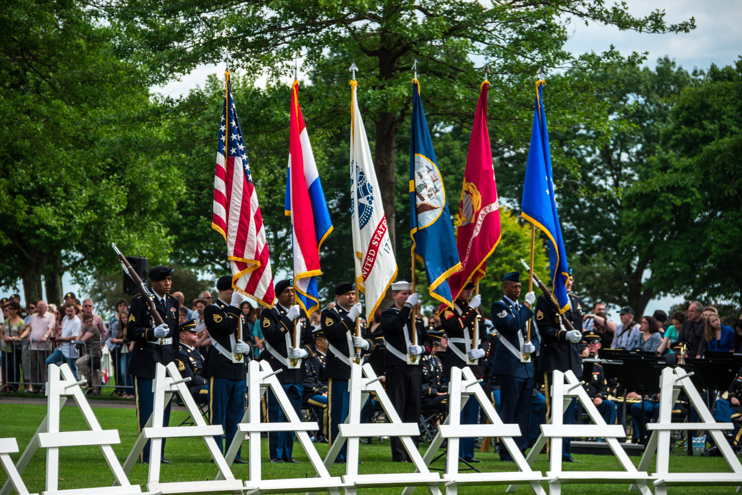 A U.S. Color Guard participates in the 2014 Memorial Day Ceremony at Netherlands American Cemetery.