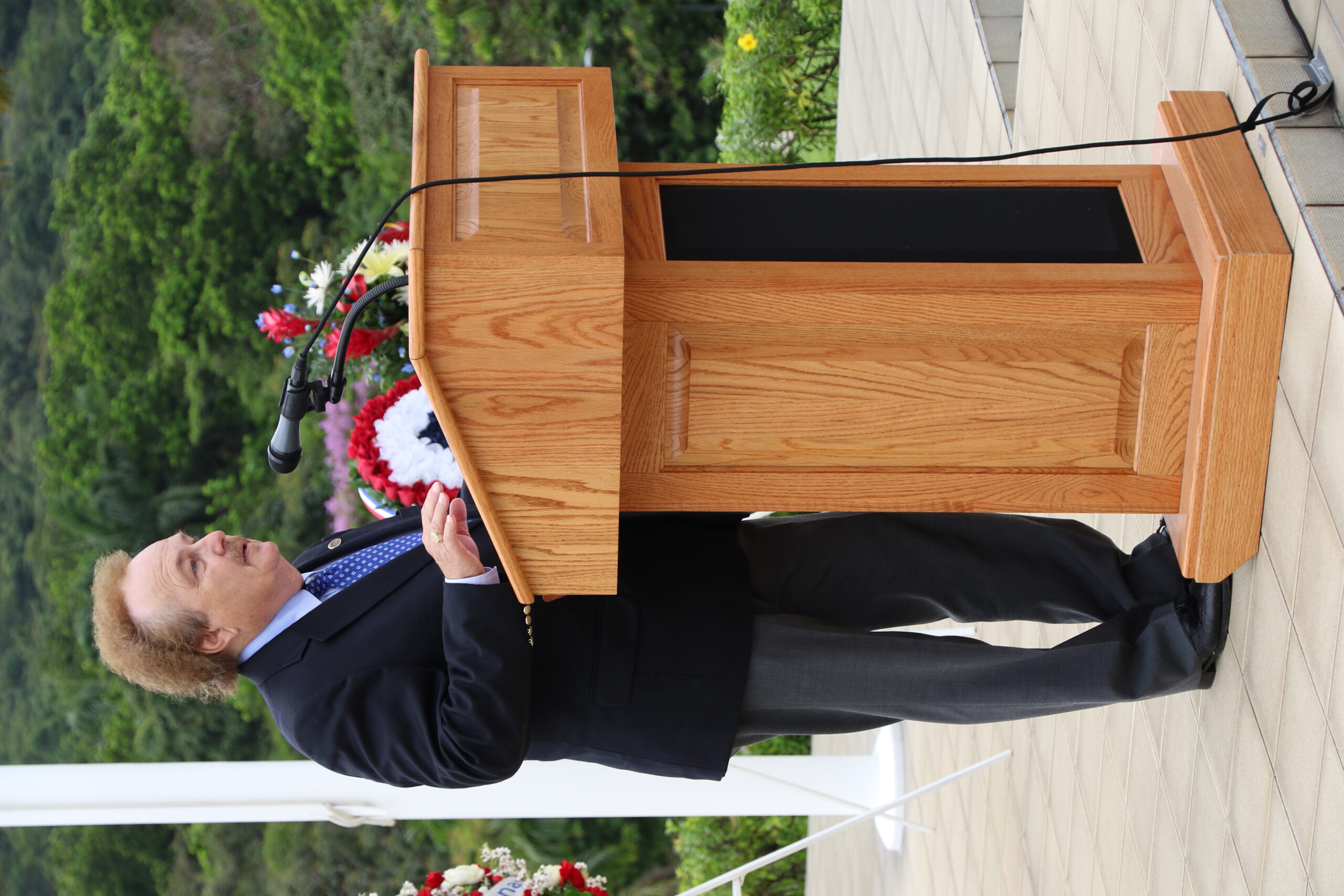 ABMC Commissioner Darrell Dorgan delivers remarks during the 2015 Memorial Day Ceremony at Corozal American Cemetery. Image courtesy of the U.S. Embassy Panama.