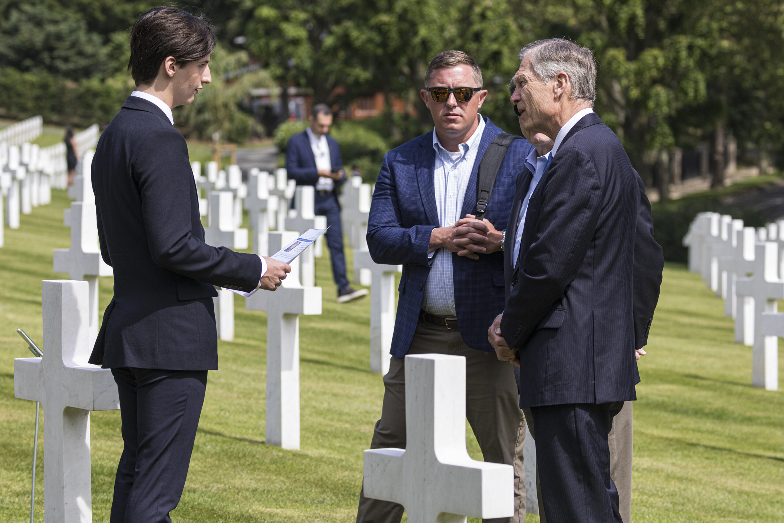 The Honorable Brian Babin (R-TX), US House Representative listens to American School in Paris student interpretive story.