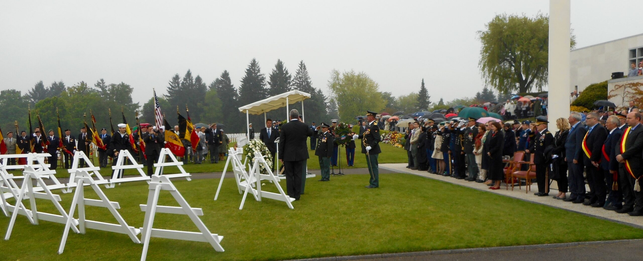 The King of Belgium’s Representative lays a wreath during the 2015 Memorial Day Ceremony at Henri-Chapelle American Cemetery.