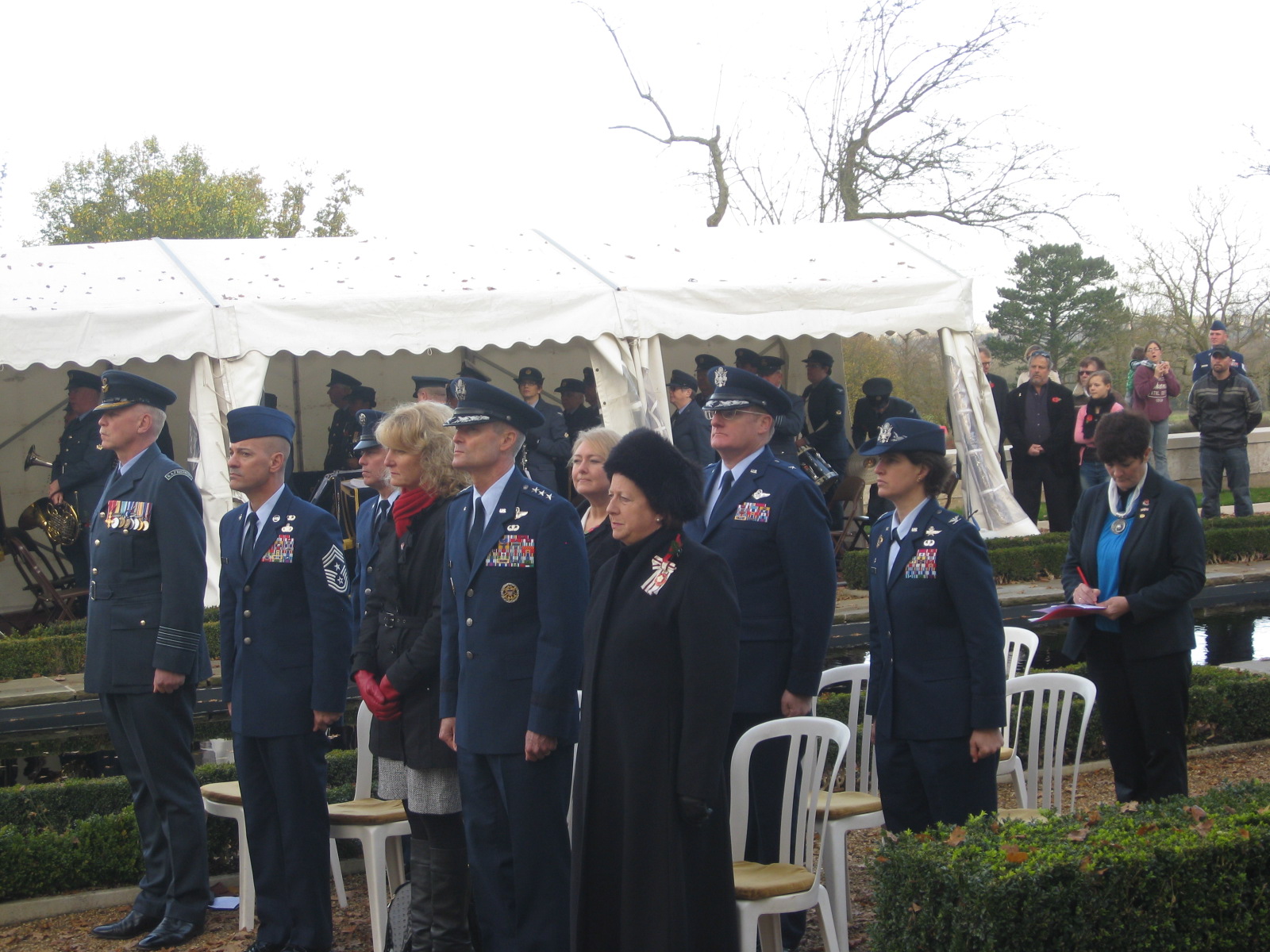 Members of the official party stand during the 2014 Veterans Day Ceremony at Cambridge American Cemetery.