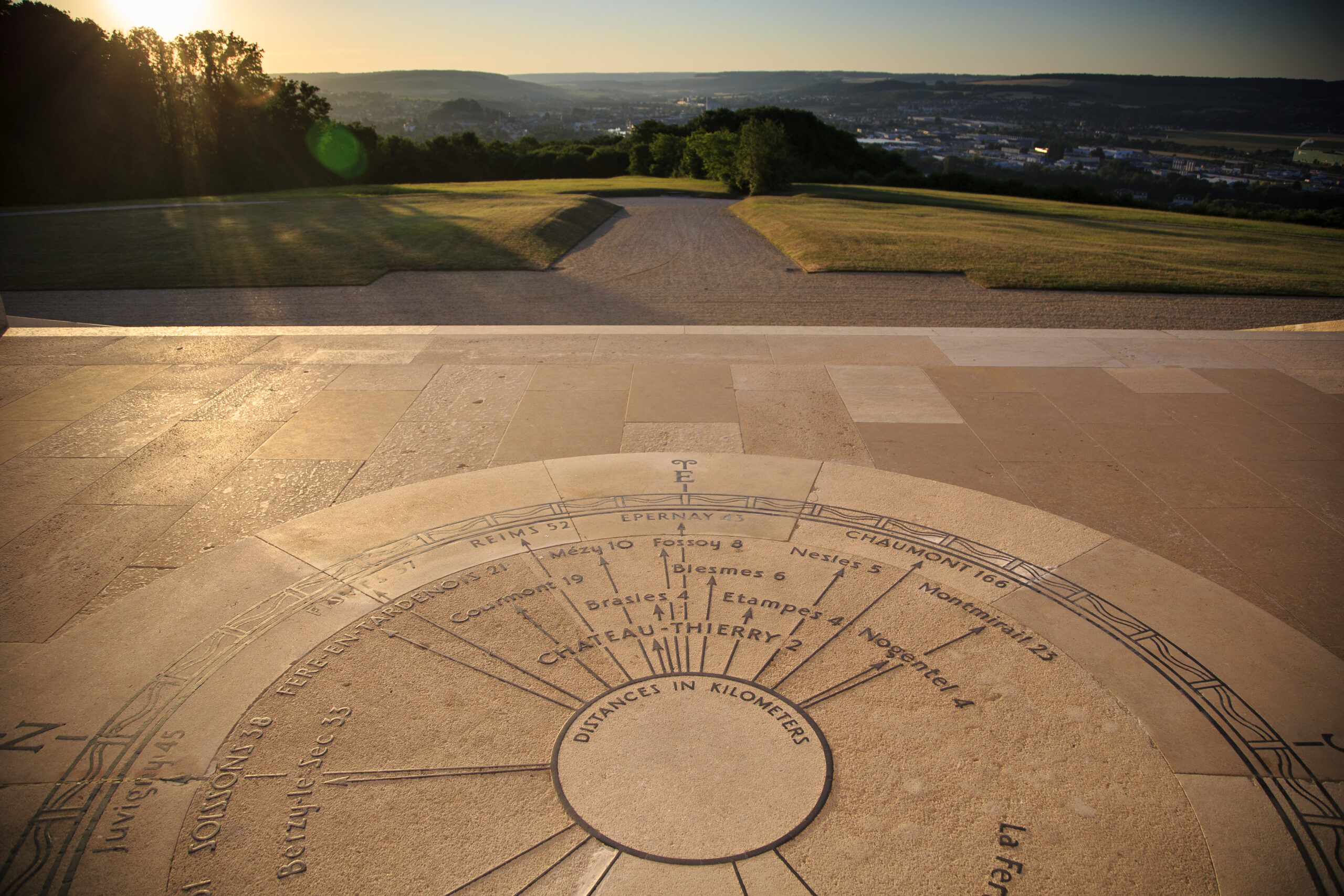 The orientation table at the Chateau-Thierry American Monuments shows the location of nearby towns and villages. Photo Credit: Warrick Page/American Battle Monuments Commission.