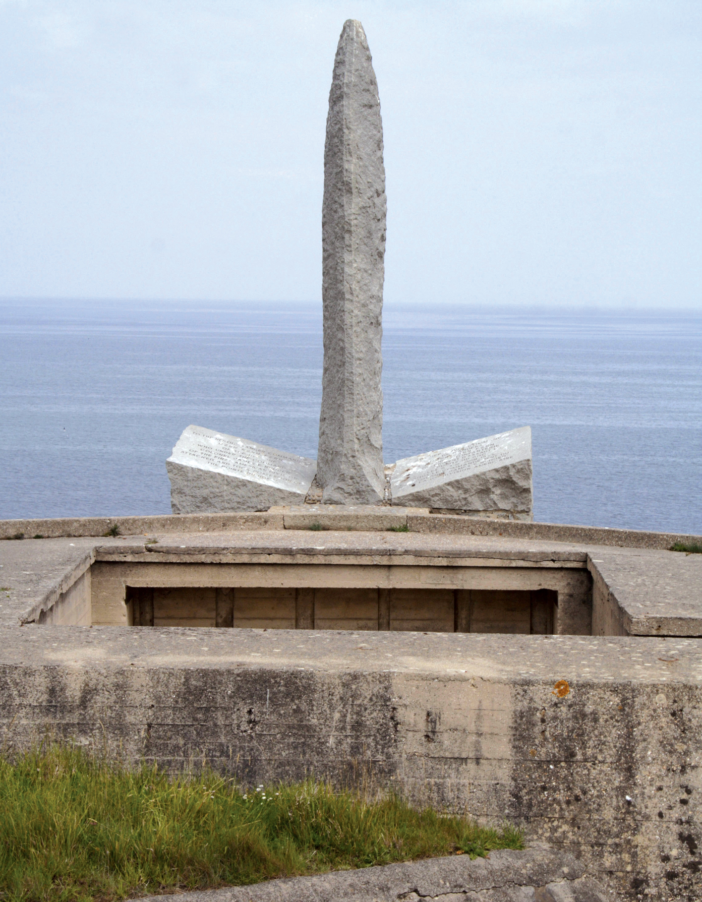 The Ranger Monument stands in front of the English Channel at Pointe du Hoc.