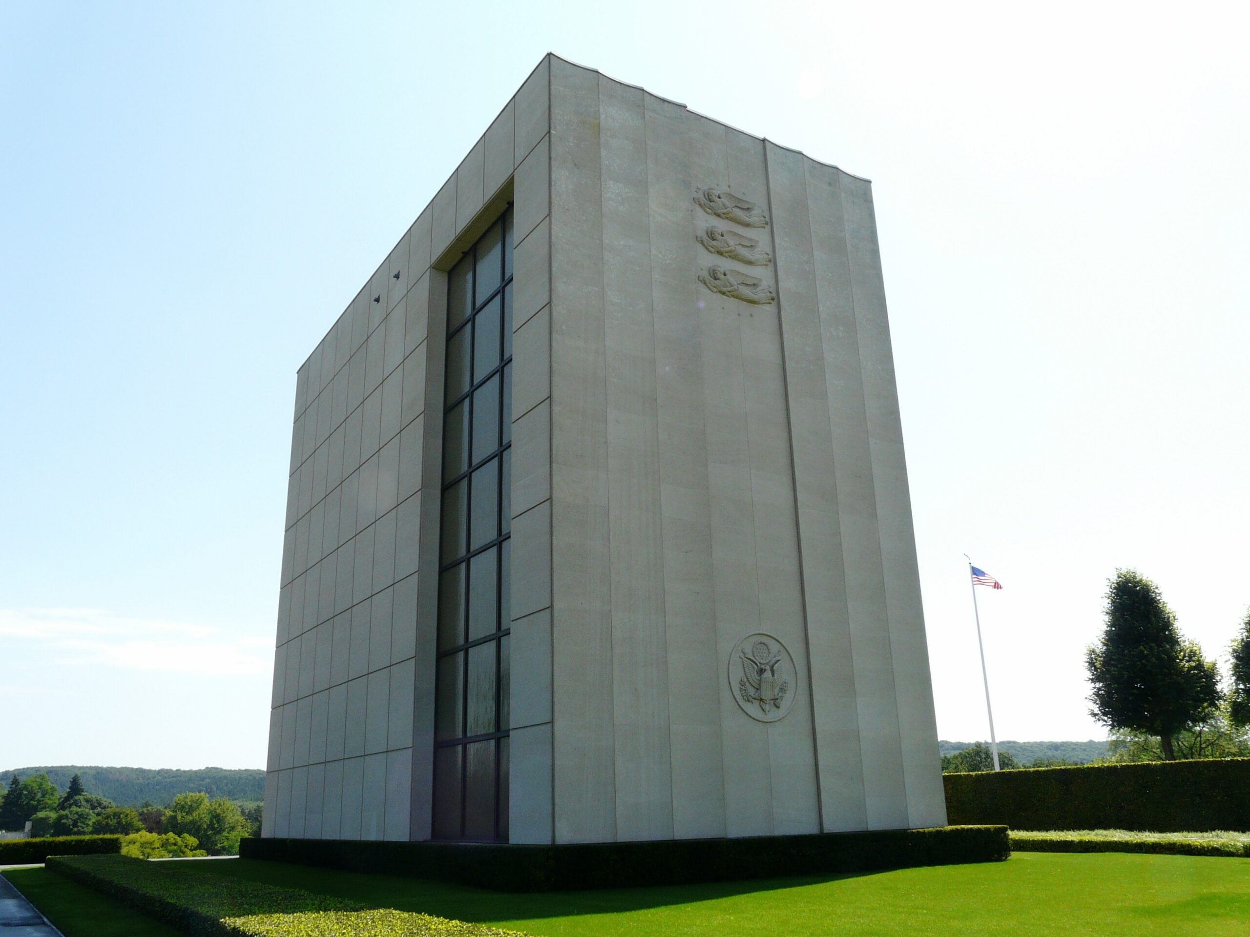 The rear exterior of the chapel at Lorraine American Cemetery.