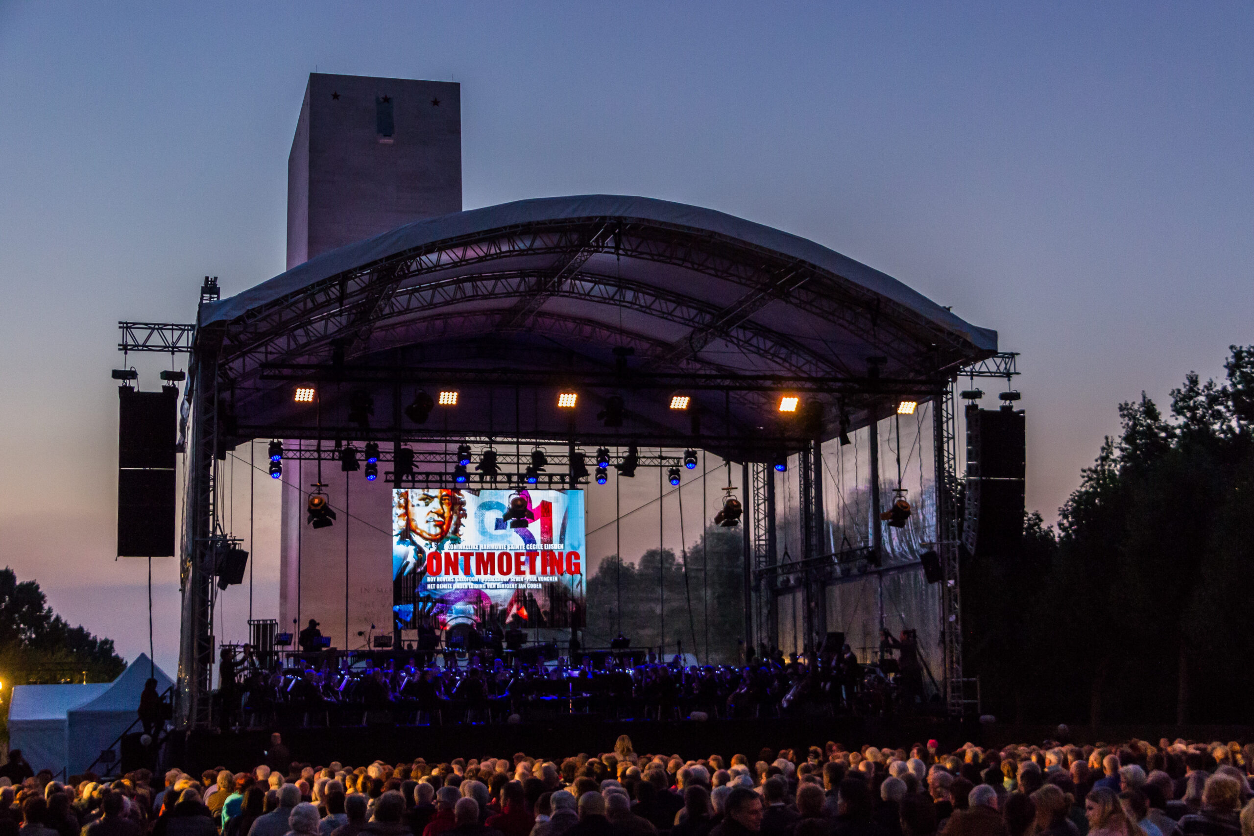 The sun sets during the Royal Harmonie Sainte Cecile concert at Netherlands American Cemetery.