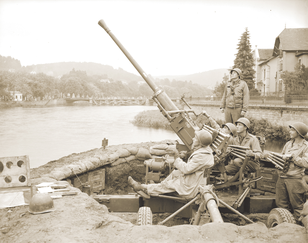 U.S. Army antiaircraft gunners protect Epinal and the Moselle River from attacks by German aircraft. Image courtesy of The National Archives.