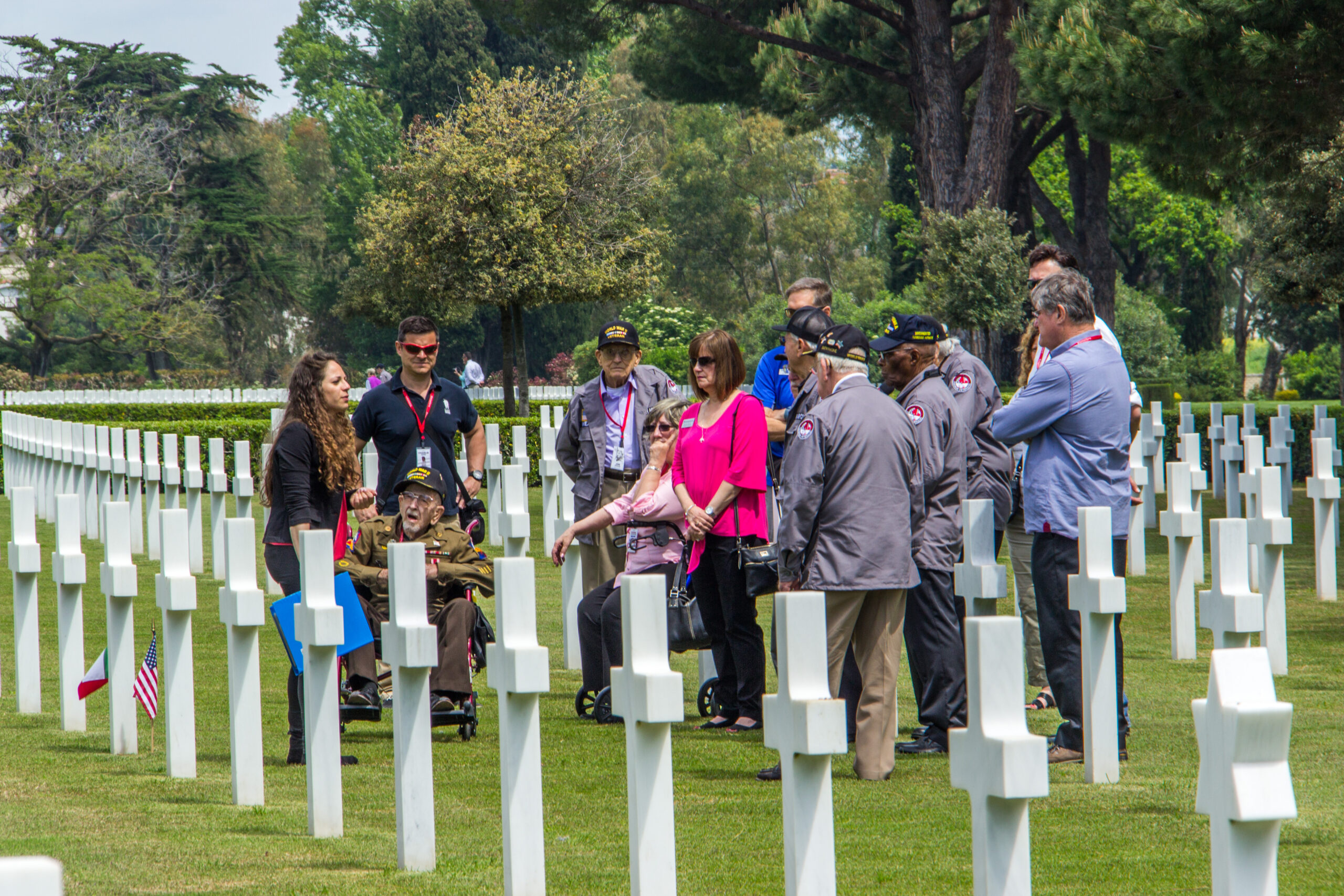 Veronica Stasio provides a tour in the plot area to the WWII veterans.