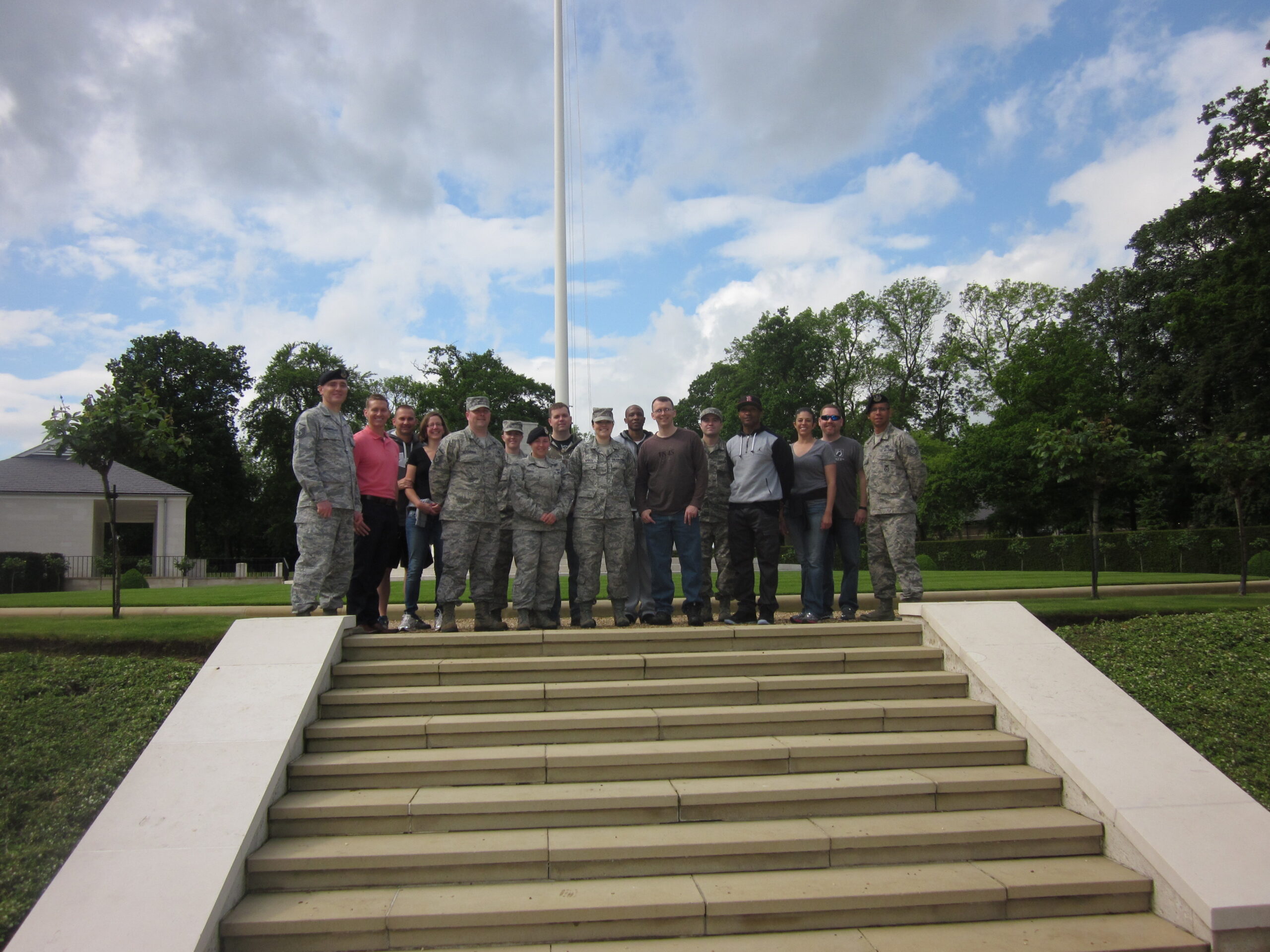 Volunteers from RAF Mildenhall volunteered their time to help place an American flag and British flag at every headstone in Cambridge American Cemetery in preparation for the Memorial Day 2014.