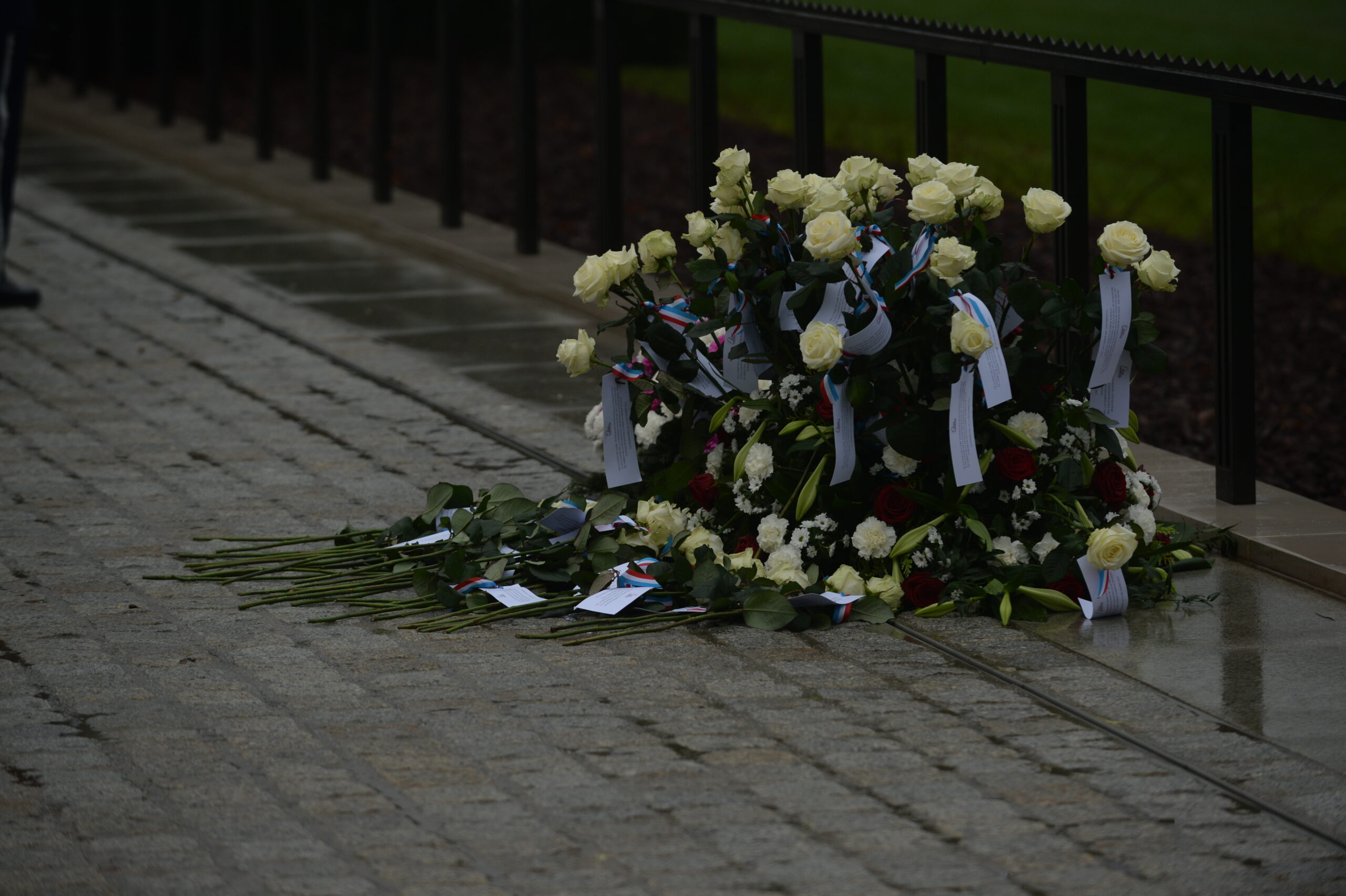 White roses were laid during the ceremony at Luxembourg American Cemetery.