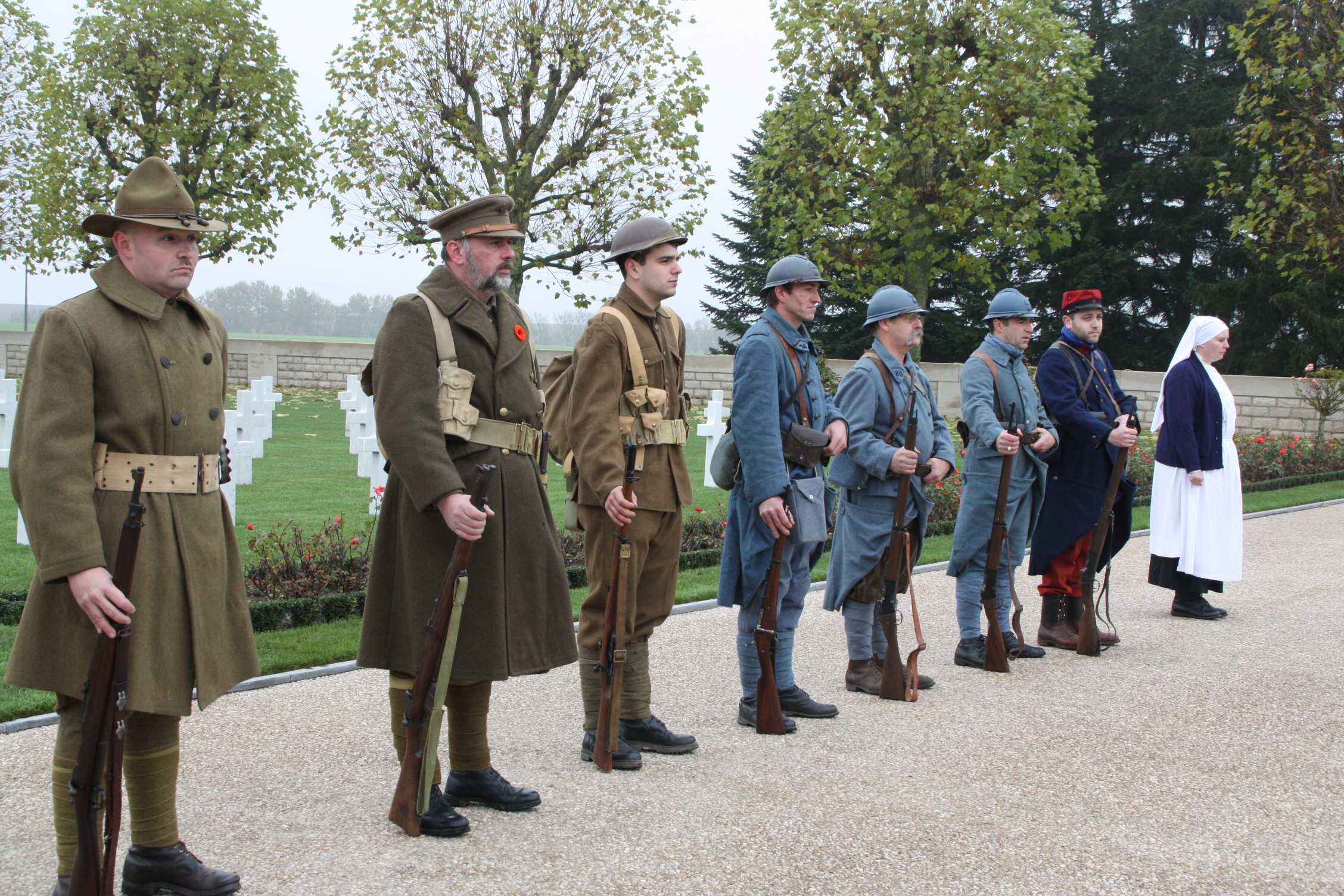 Re-enactors participate in the 2012 Veterans Day Ceremony at Somme American Cemetery.