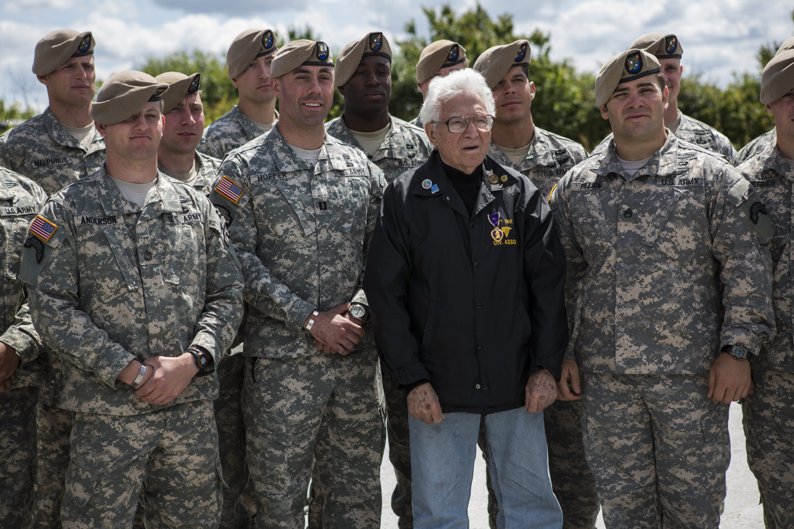 WWII vet Tony Vaccaro stands with members of the Army Rangers.